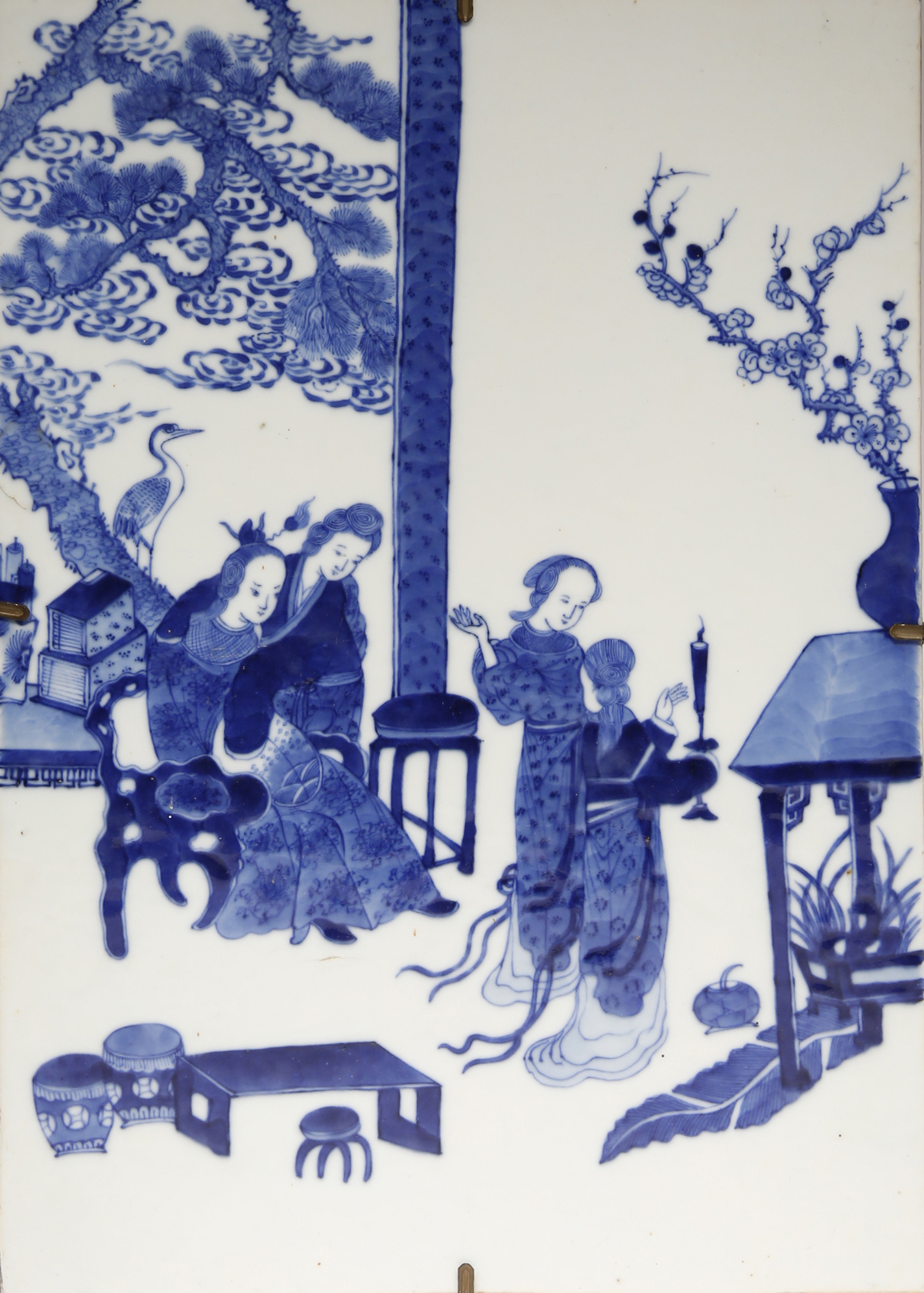 A CHINESE BLUE AND WHITE 'STORY OF THE RED CHAMBER' PLAQUE
