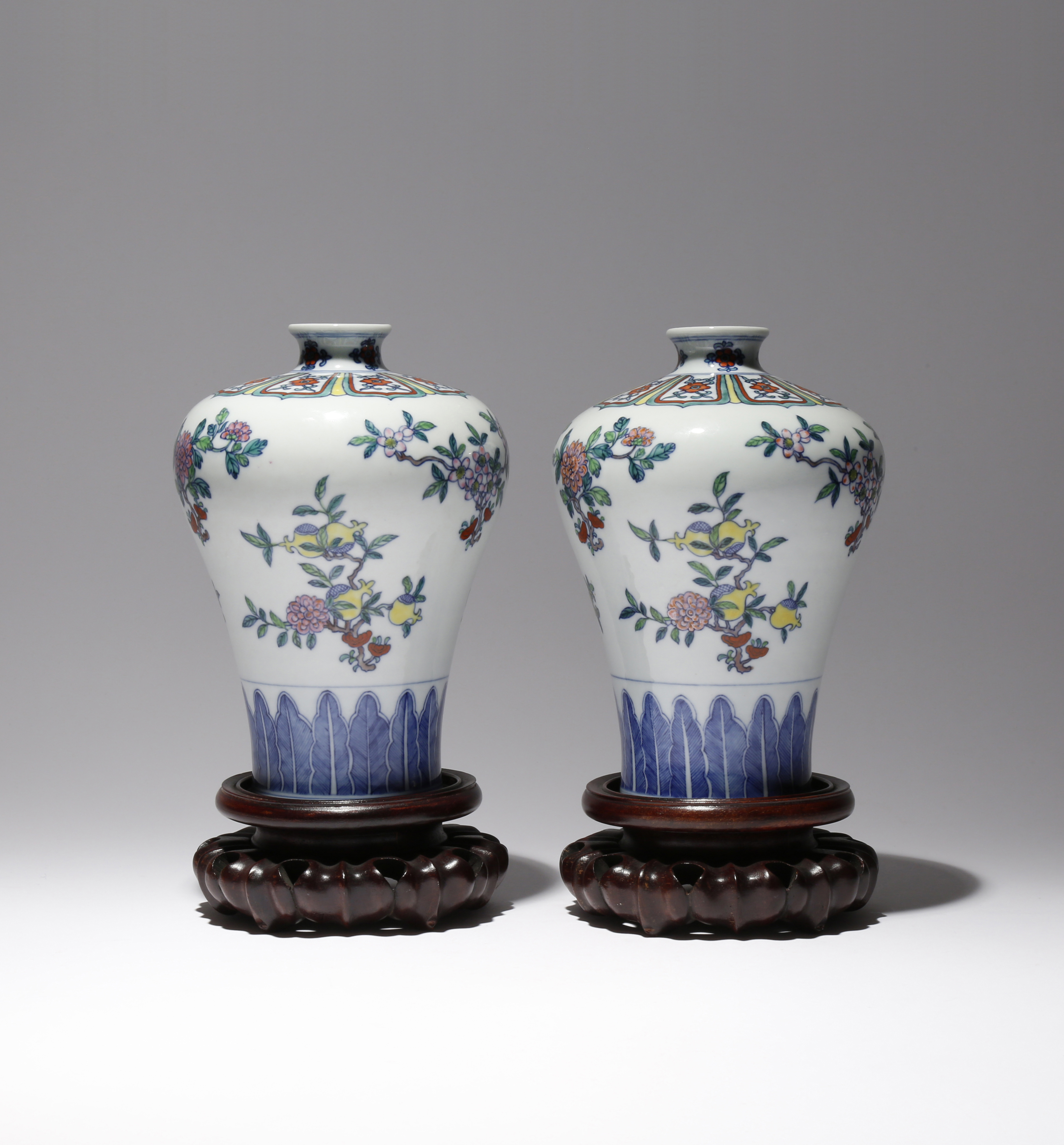 A PAIR OF CHINESE DOUCAI 'SANDUO' VASES, MEIPING