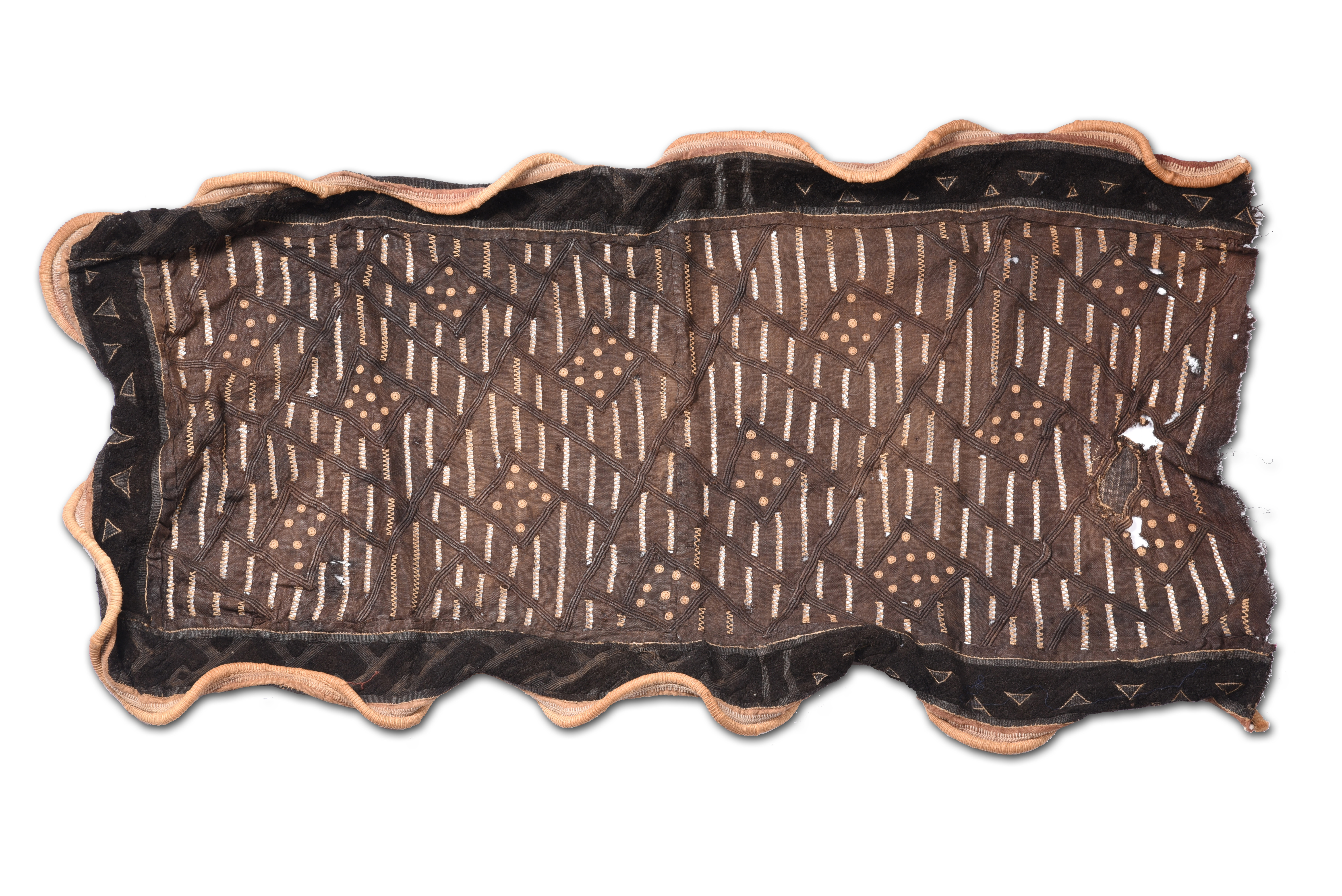 with a cut and zig-zag stitched main body and a cut pile border with wavy raffia edge,