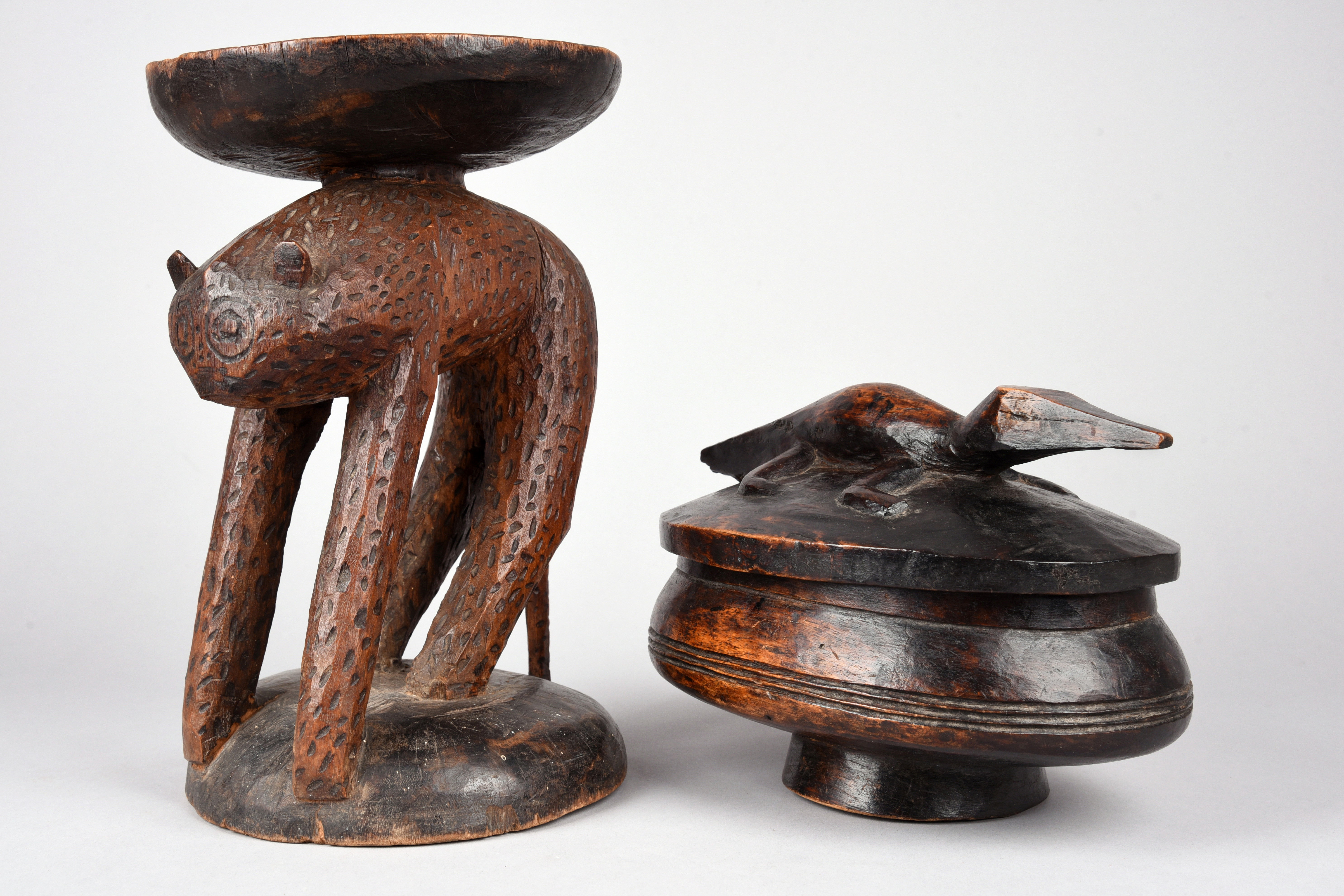 and a Rotse bowl and cover, with a carved lizard, 17.5cm high. (3)