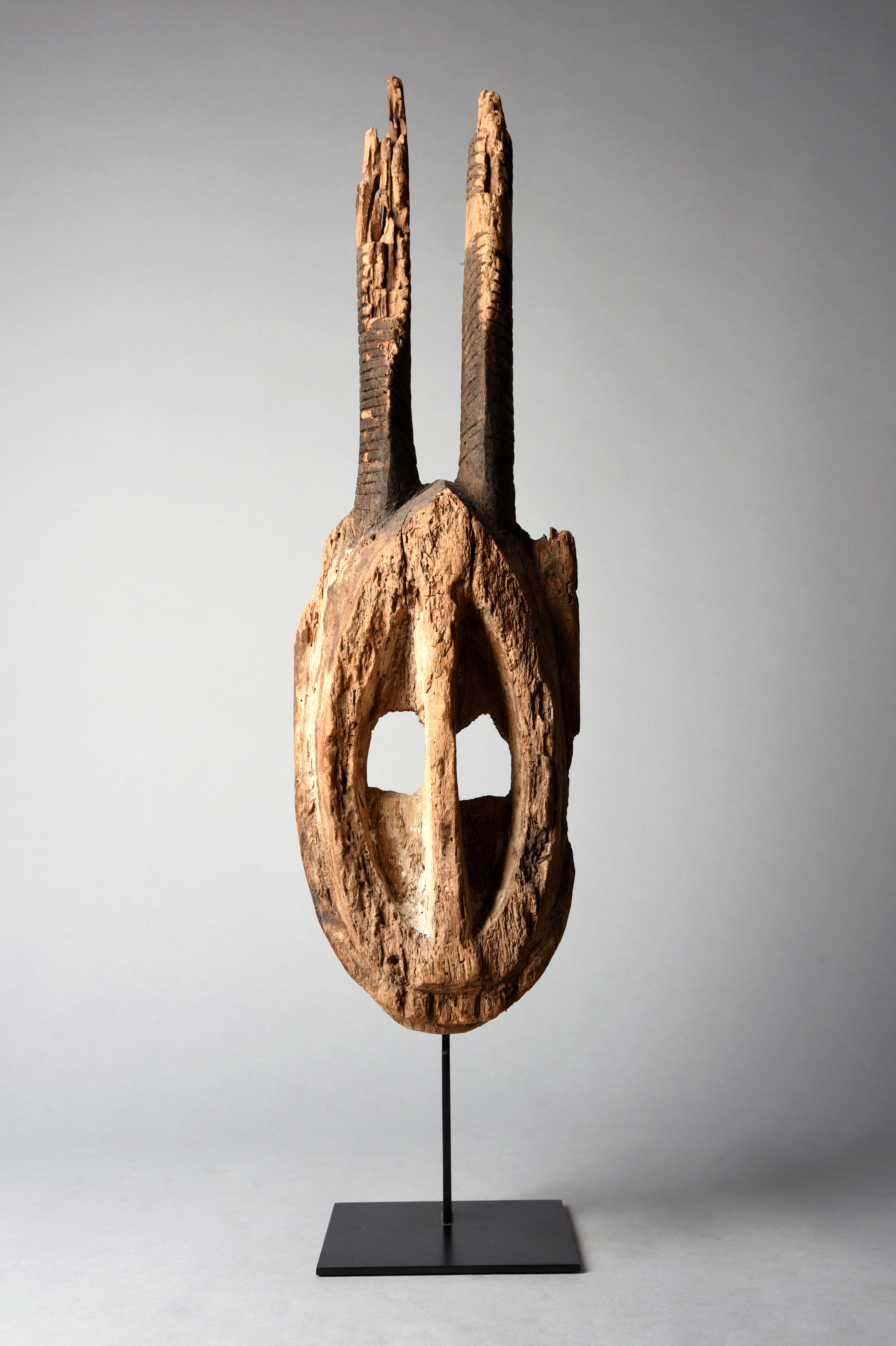 with the remains of black and white pigment, the back of the horns with scored triangles,