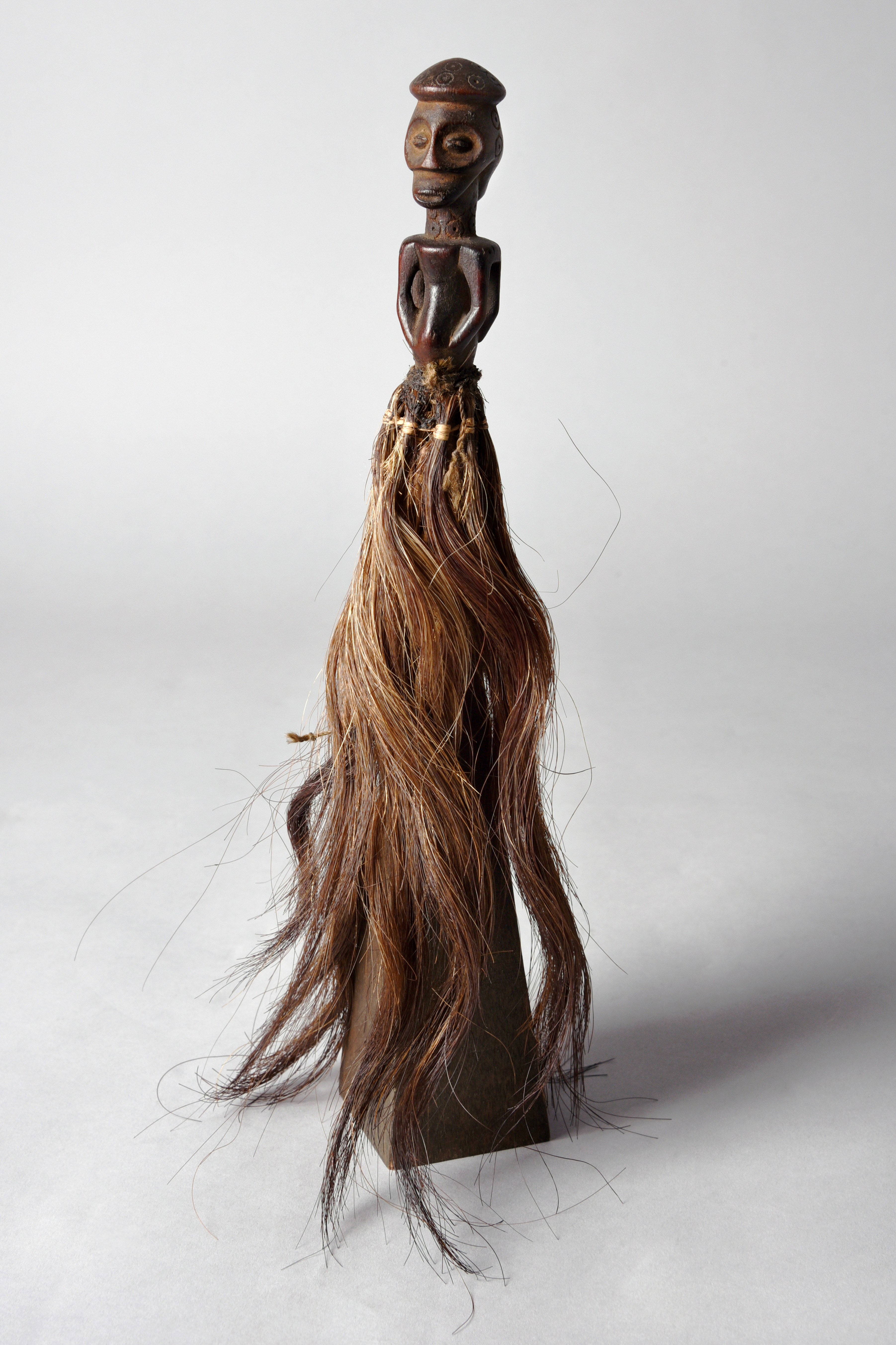 the three quarter figural handle with stamped circle and dot decoration, with animal hair,