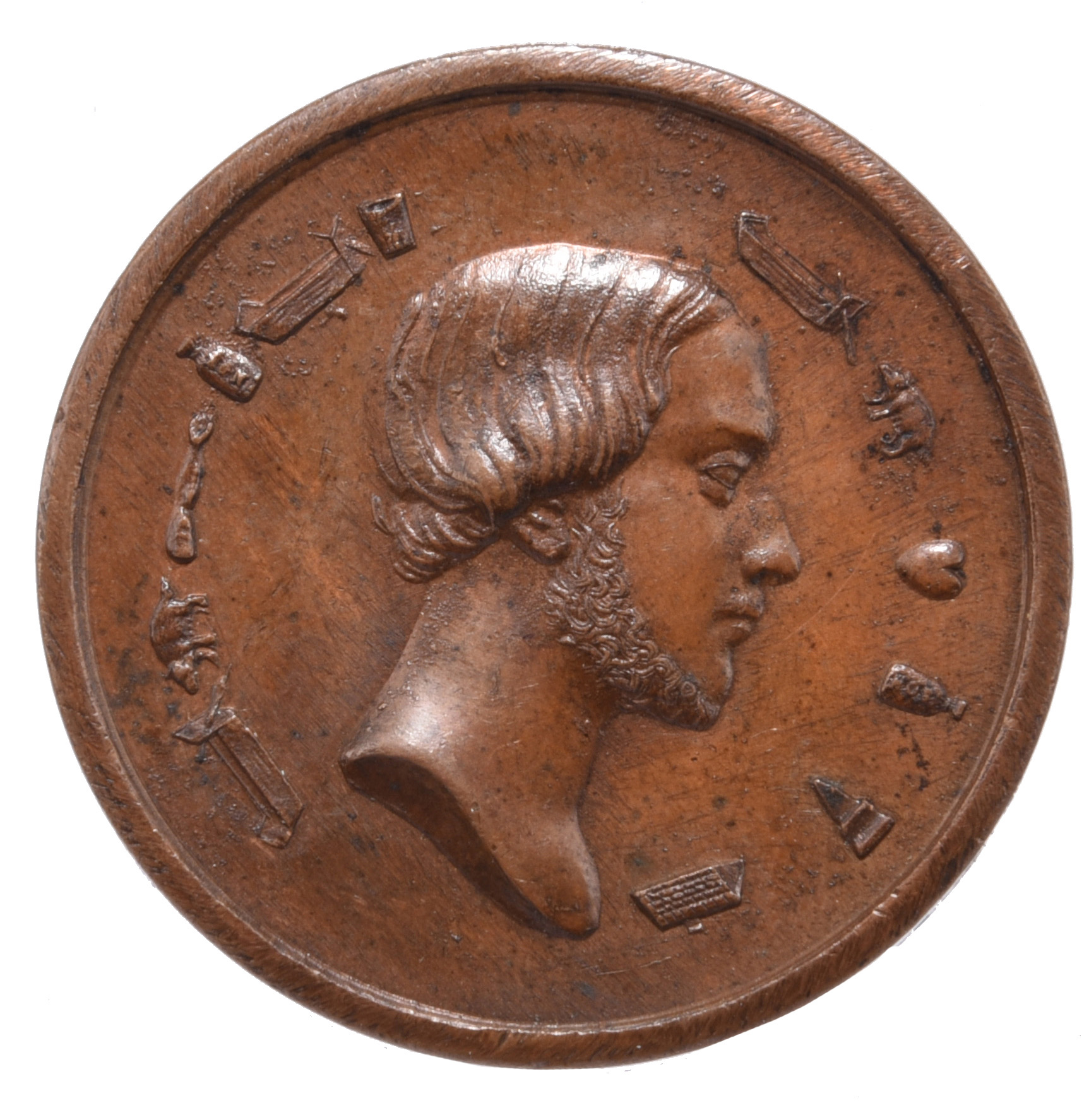 France: Henry of Artois, Count of Chambord, duc de Bordeaux (1820-1883, copper puzzle medal 1848, 41mm, head right, rev. pictogram in four lines, nearly extremely fine and scarce.