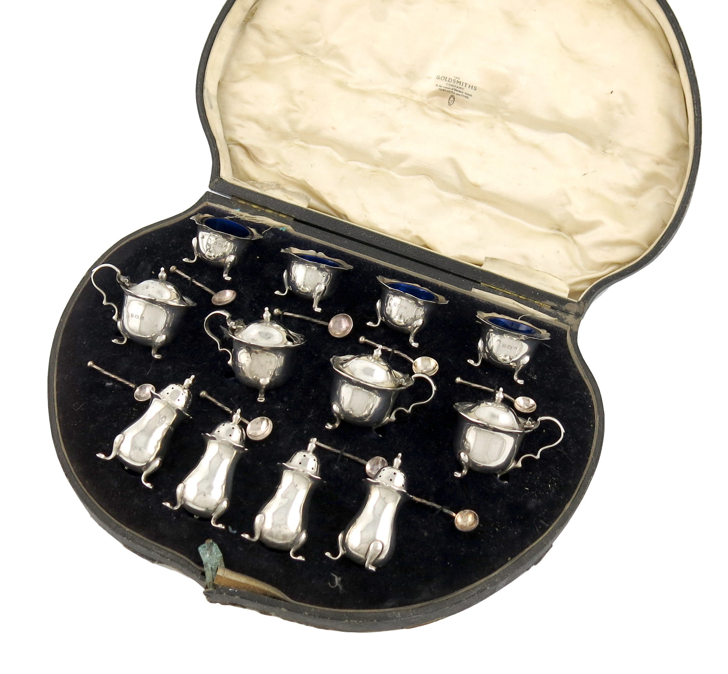 A twelve-piece silver condiment set,