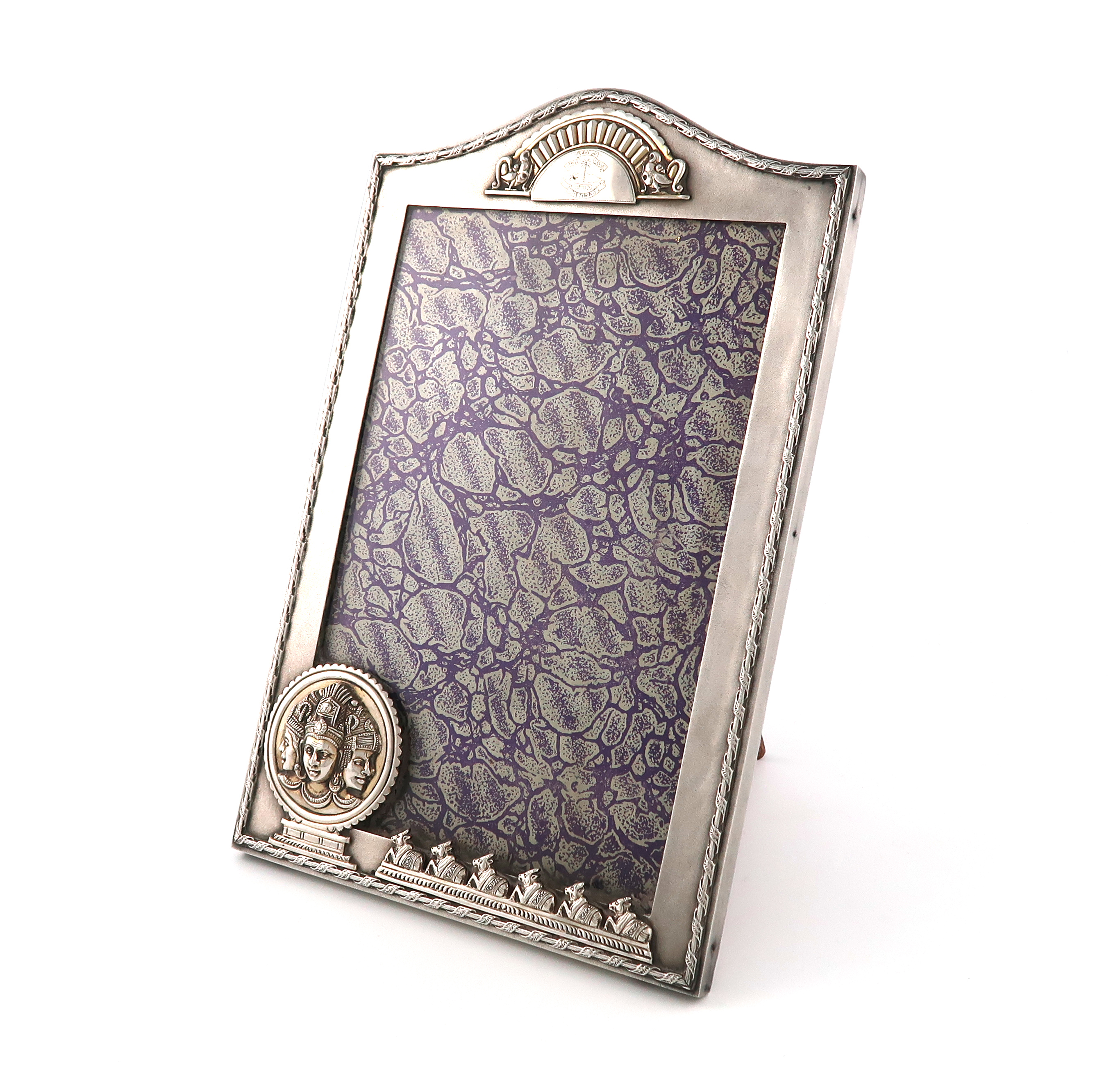 upright rectangular form, applied with a cartouche and the inscription 'Strive, Save and Serve Chettinad',
