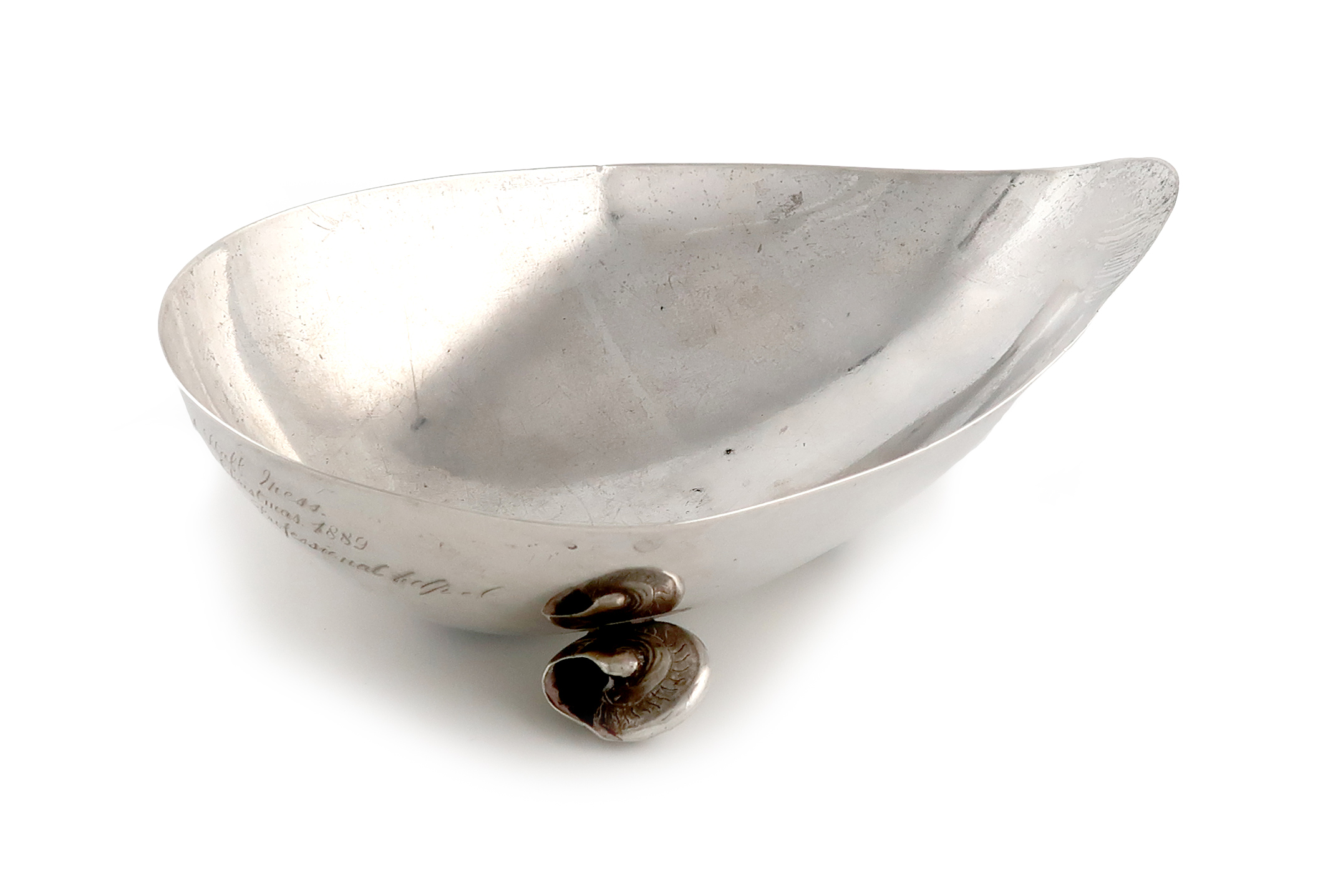 shaped form, on three shell feet, length 18.8cm, approx. weight 8oz.