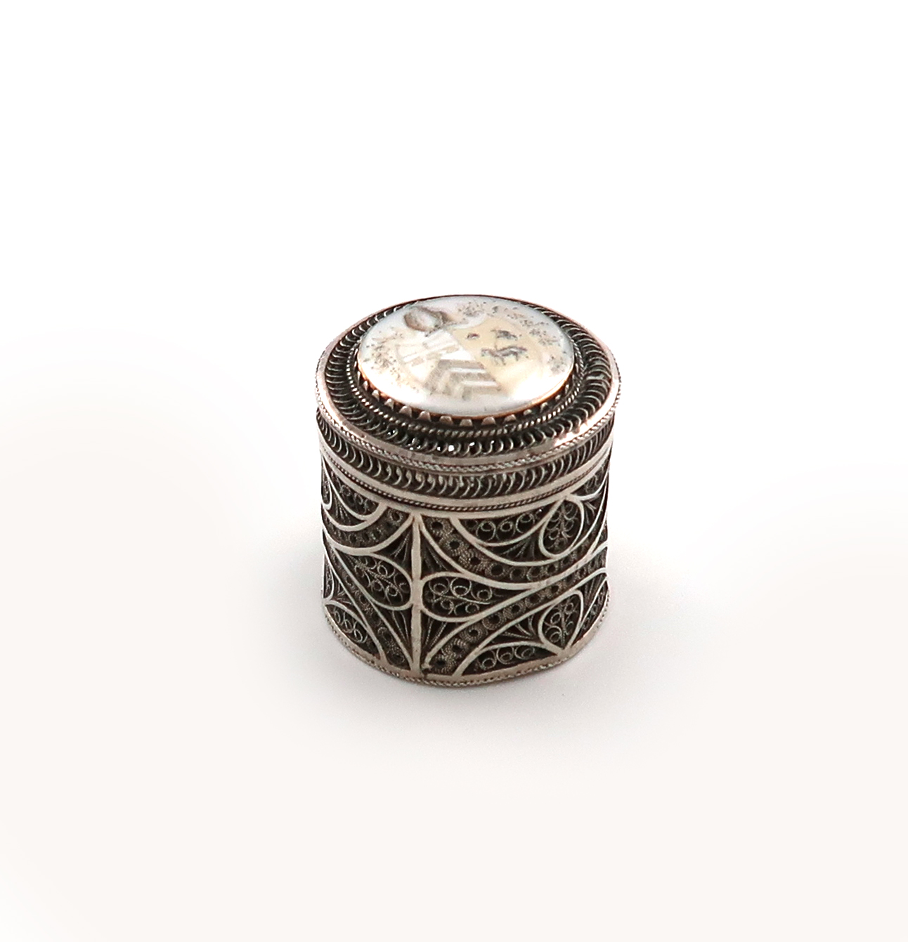 A silver filigree counter box