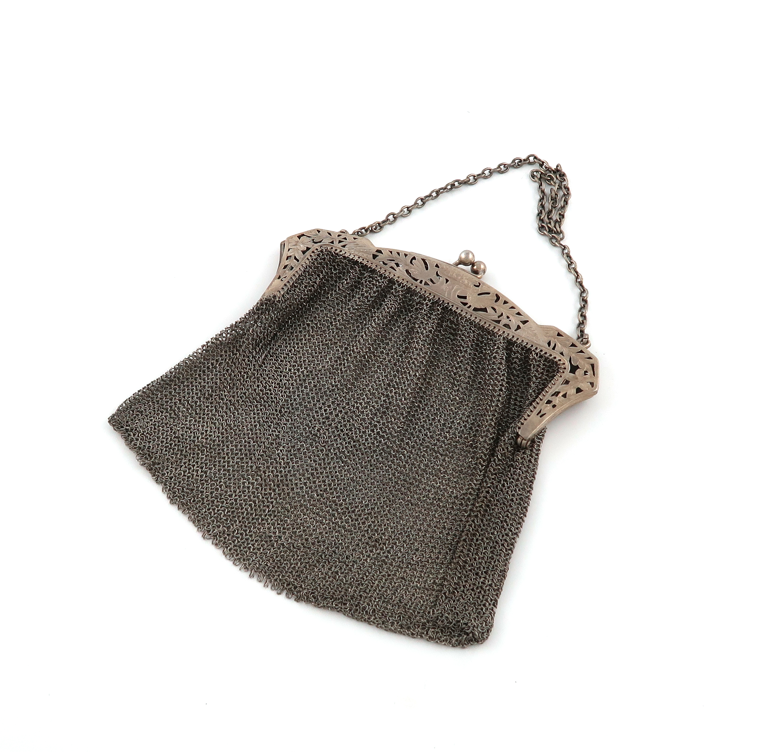 the mount pierced and engraved with birds and foliate decoration, with a silver chain handle, approx. weight 6.8oz.
