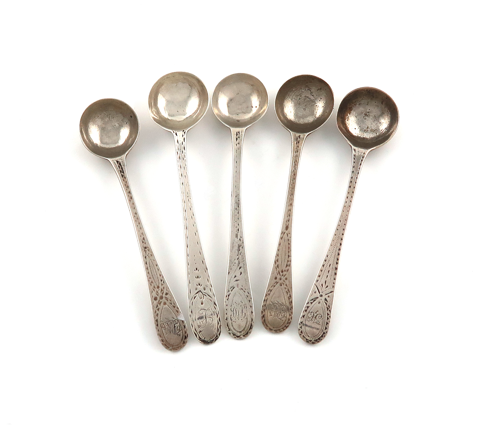A small collection of George III silver Bright-cut salt spoons by the Bateman family
