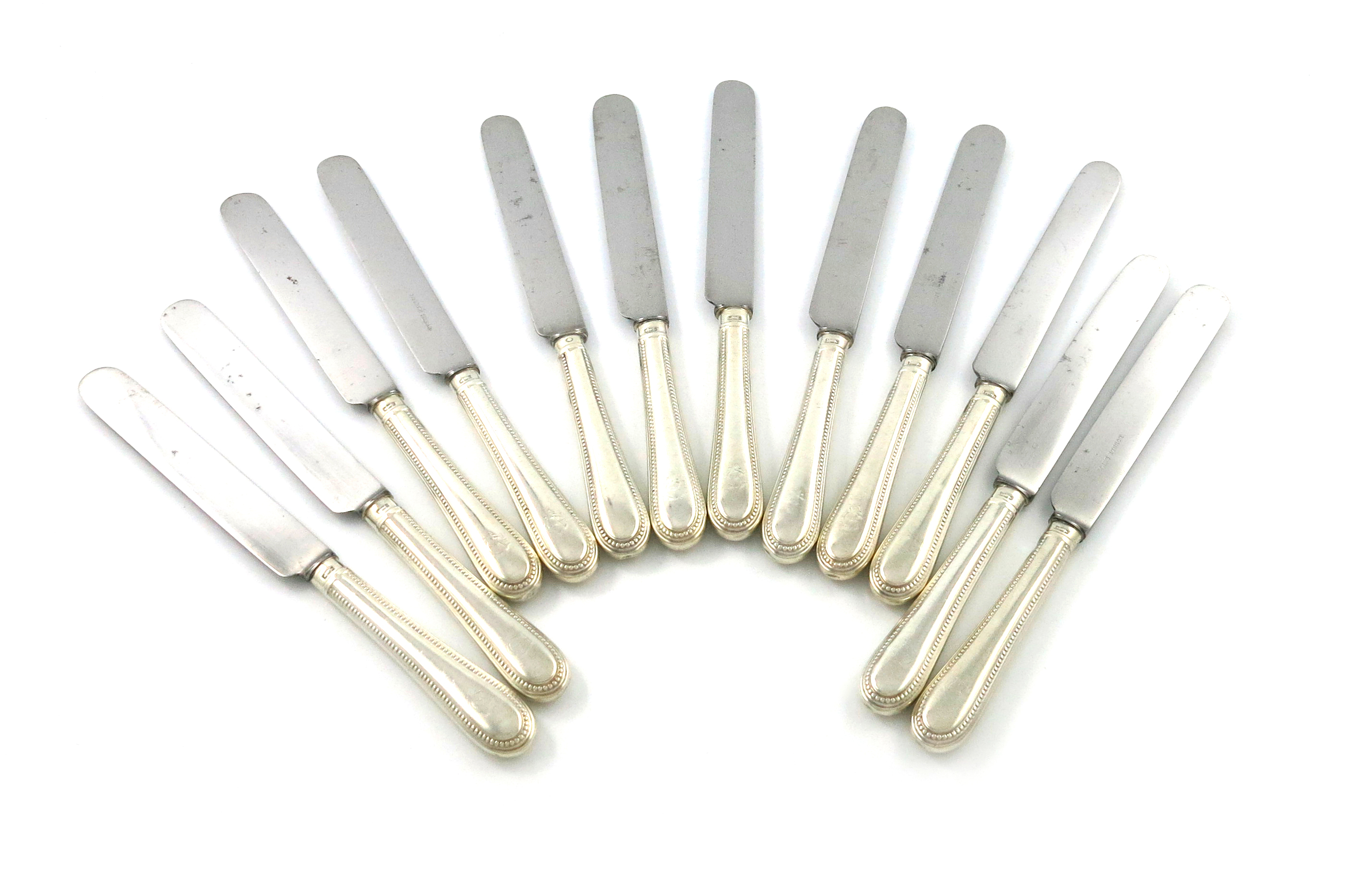 A set of twelve late-Victorian silver Bead pattern table knives,