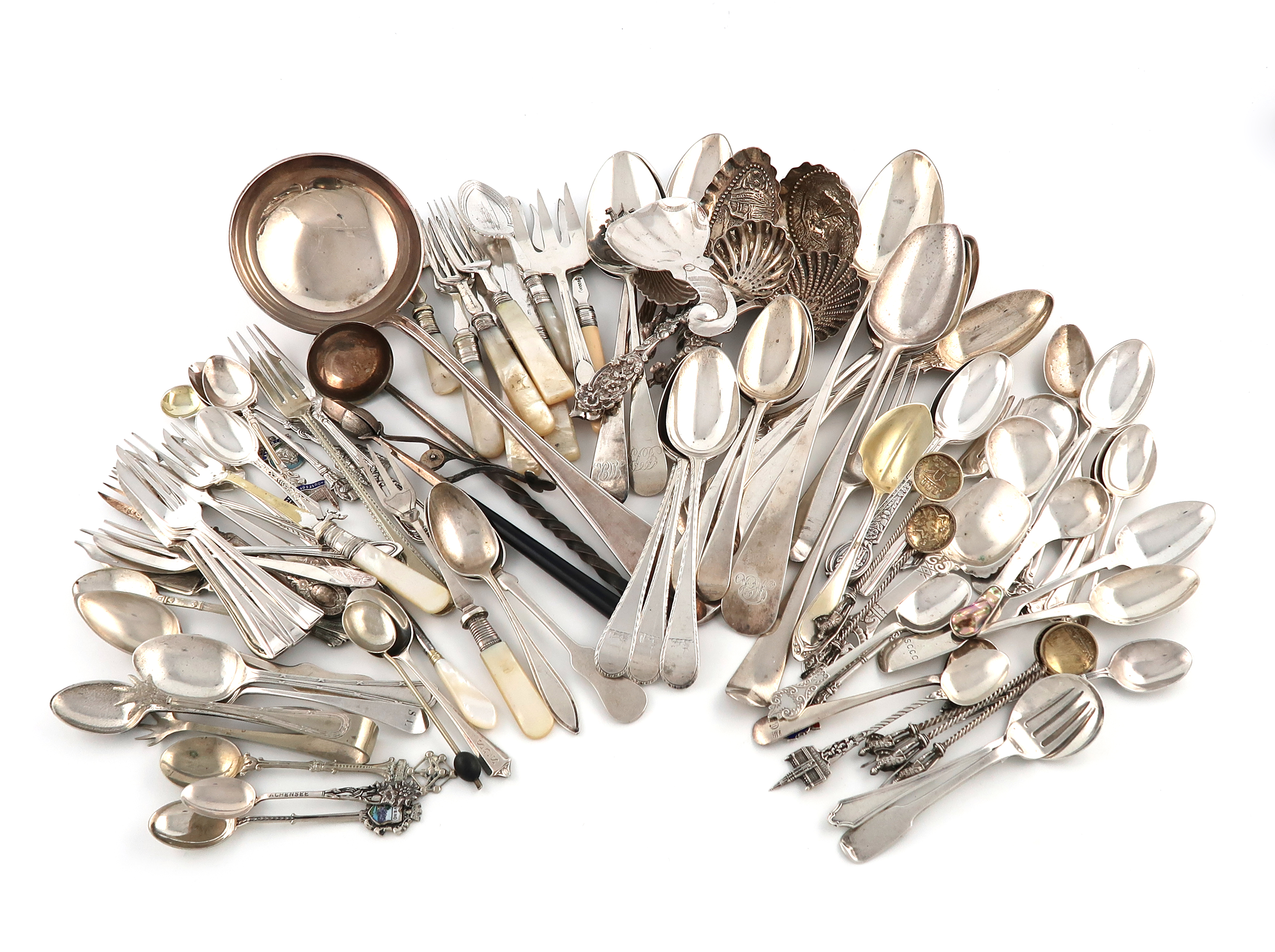 λA mixed lot of flatware,