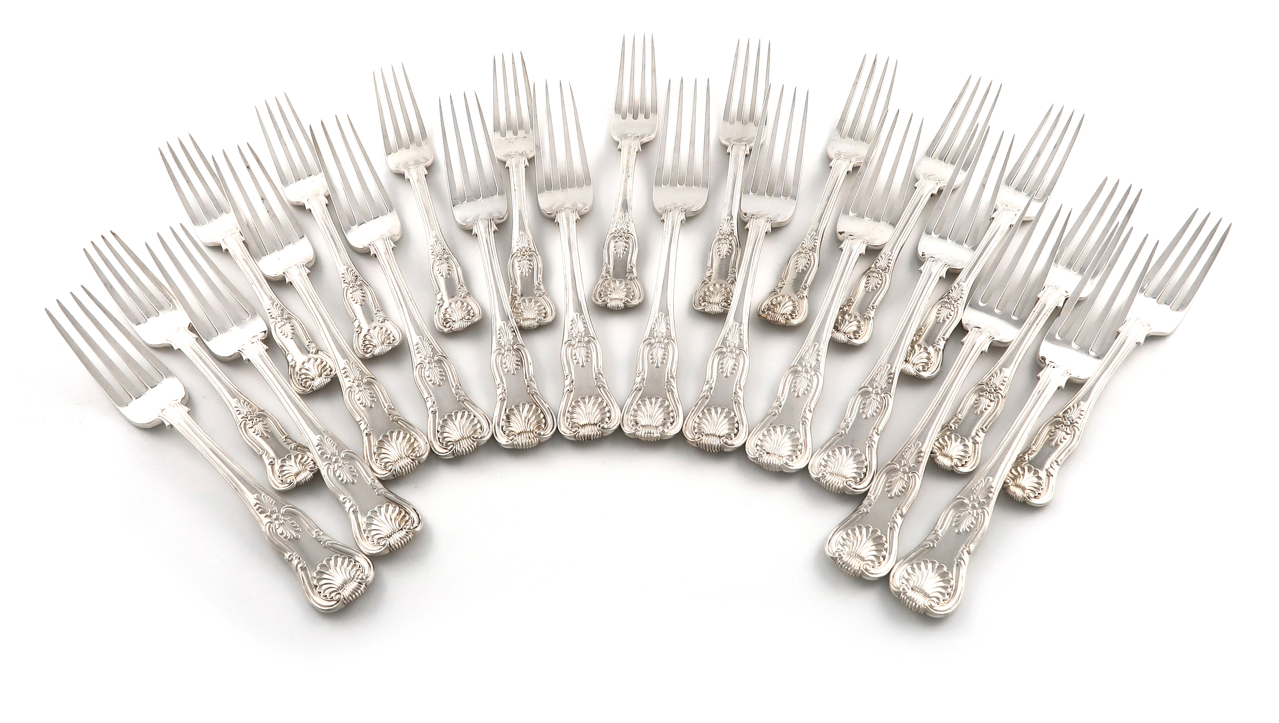 A matched set of twelve George IV / William IV silver Kings pattern table forks and twelve dessert