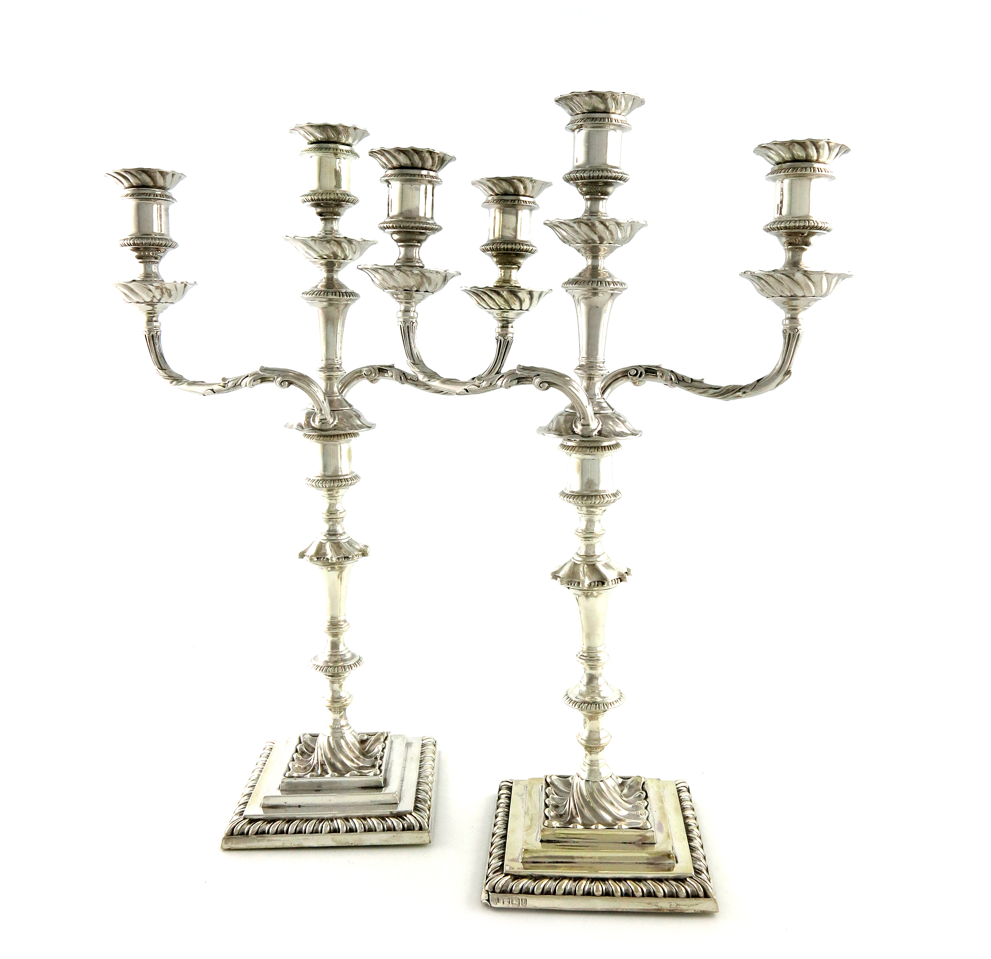 A pair of Victorian silver three-light candelabra