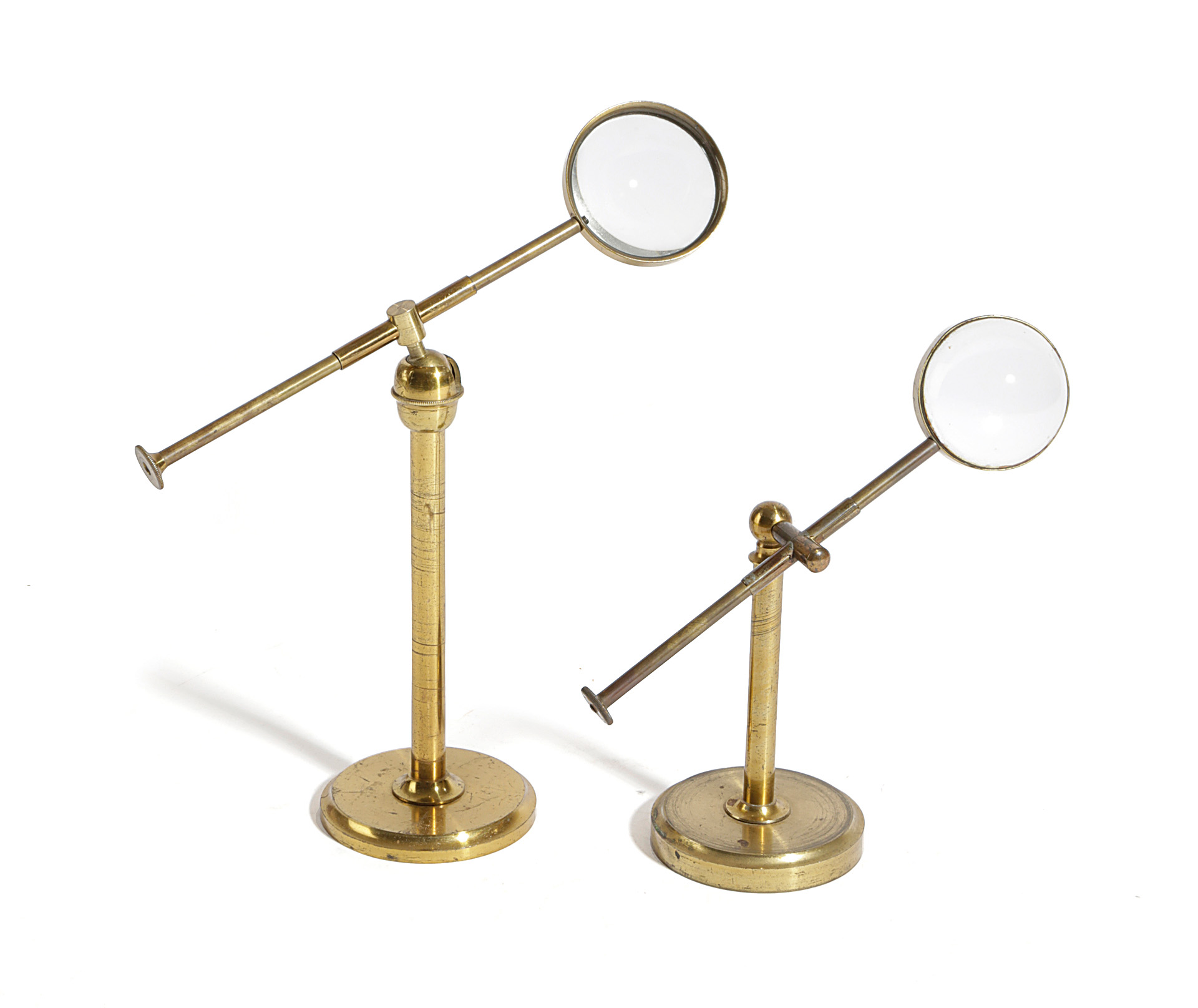 TWO VICTORIAN BRASS SCIENTIFIC MAGNIFYING GLASSES