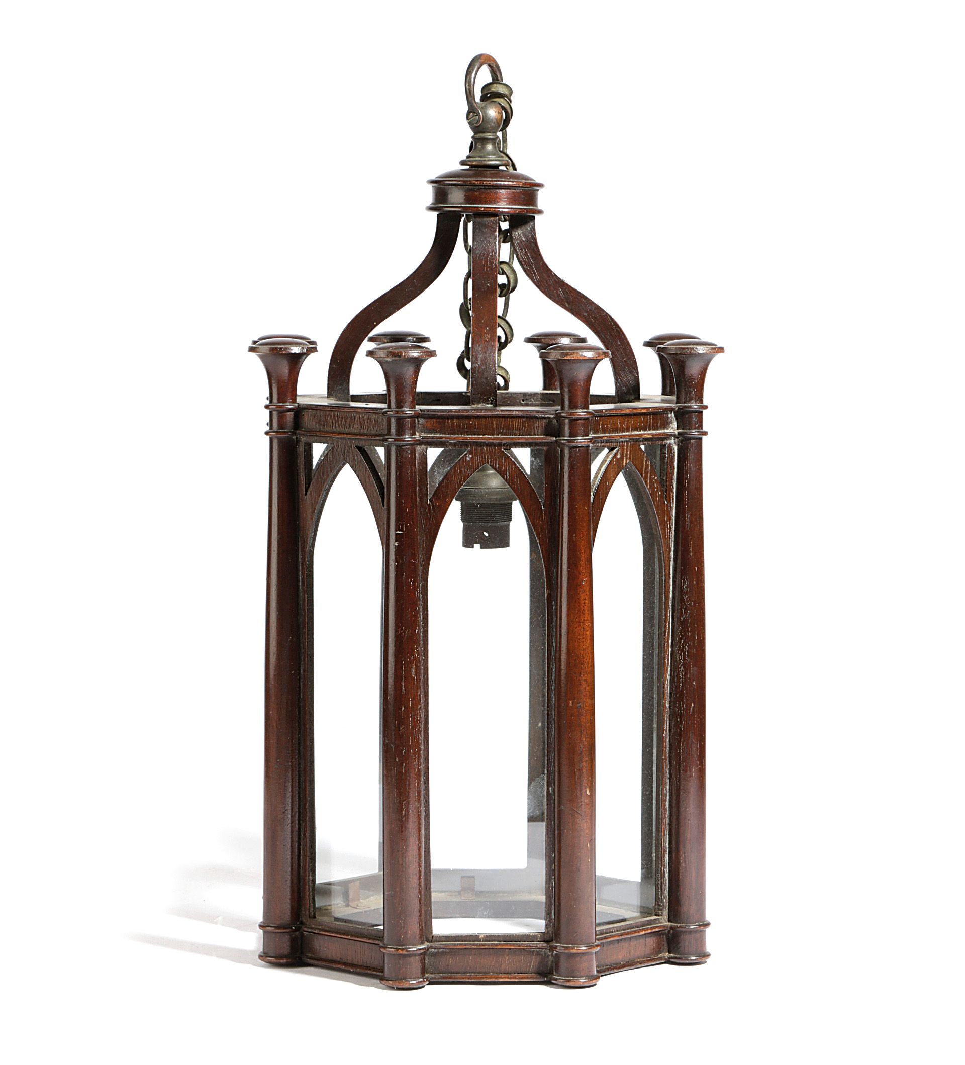 A SMALL MAHOGANY OCTAGONAL HALL LANTERN