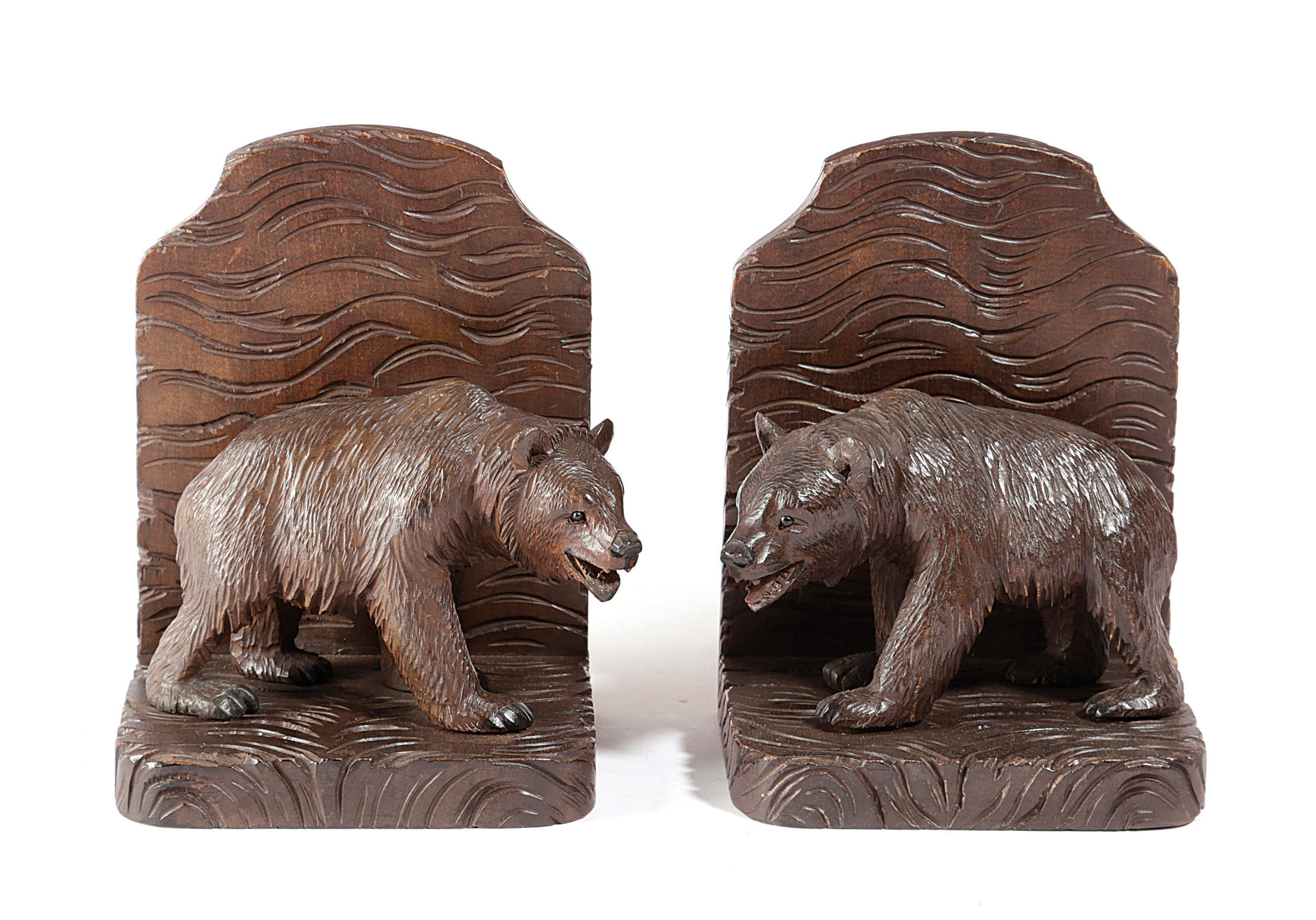 A PAIR OF BLACK FOREST LINDEN WOOD BEAR BOOKENDS