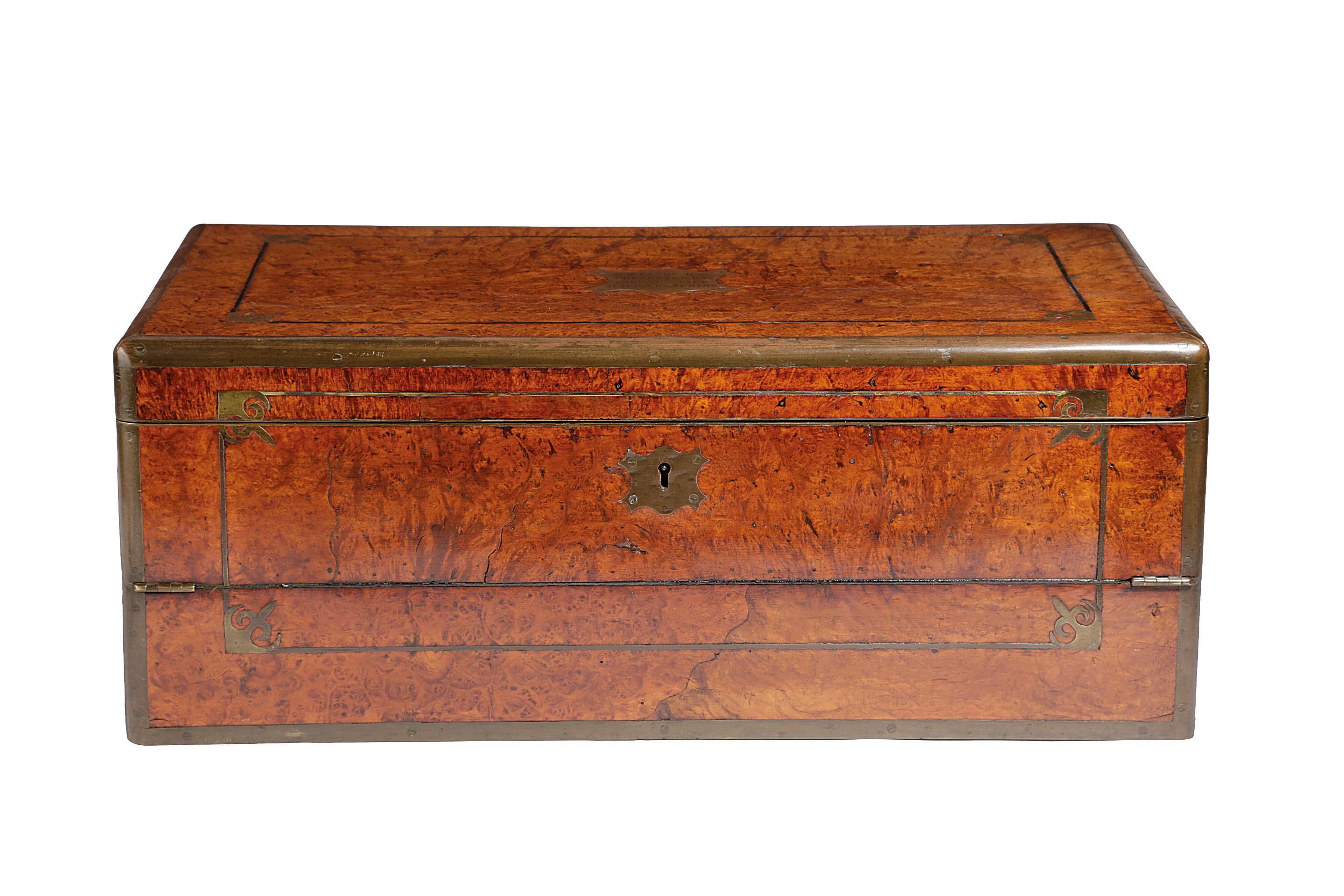 AN ANGLO-CHINESE NAVAL AMBOYNA AND PADOUK WRITING SLOPE