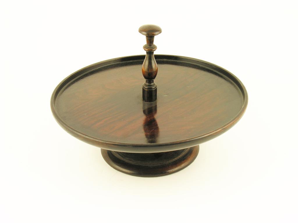 A turned mahogany lazy suzan, 9.25in (23.5cm) h, 13in (33cm) dia.