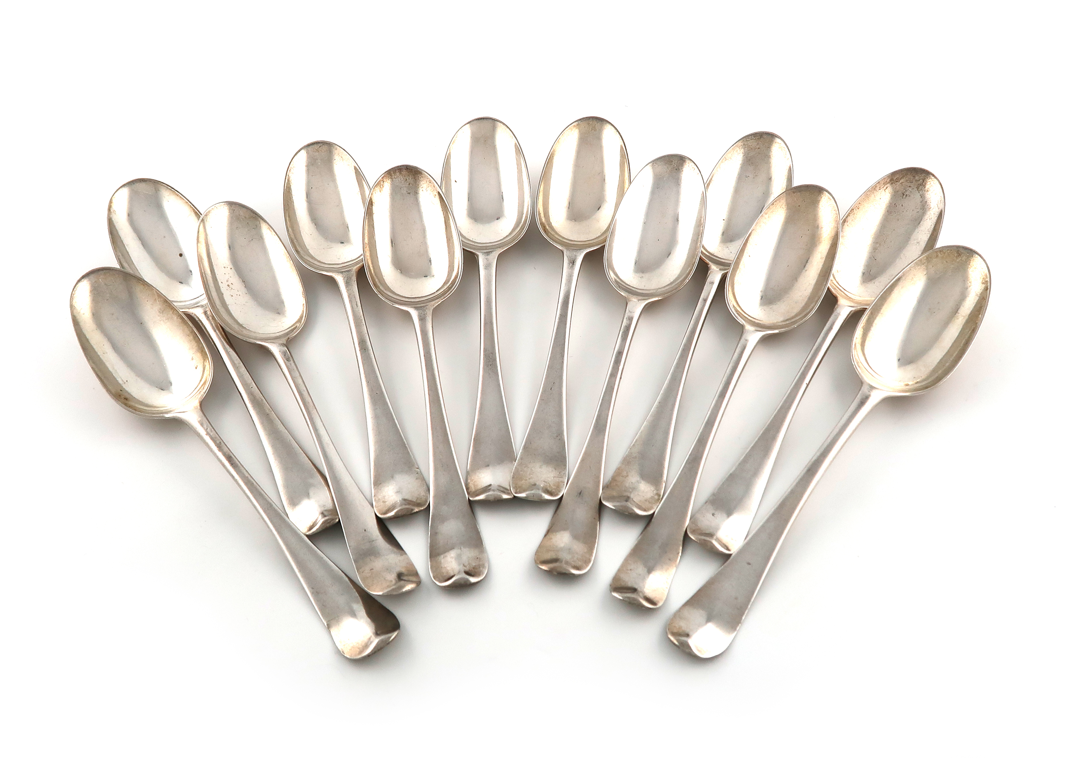 A matched set of twelve George I silver Hanoverian Rat-tail pattern tablespoons
