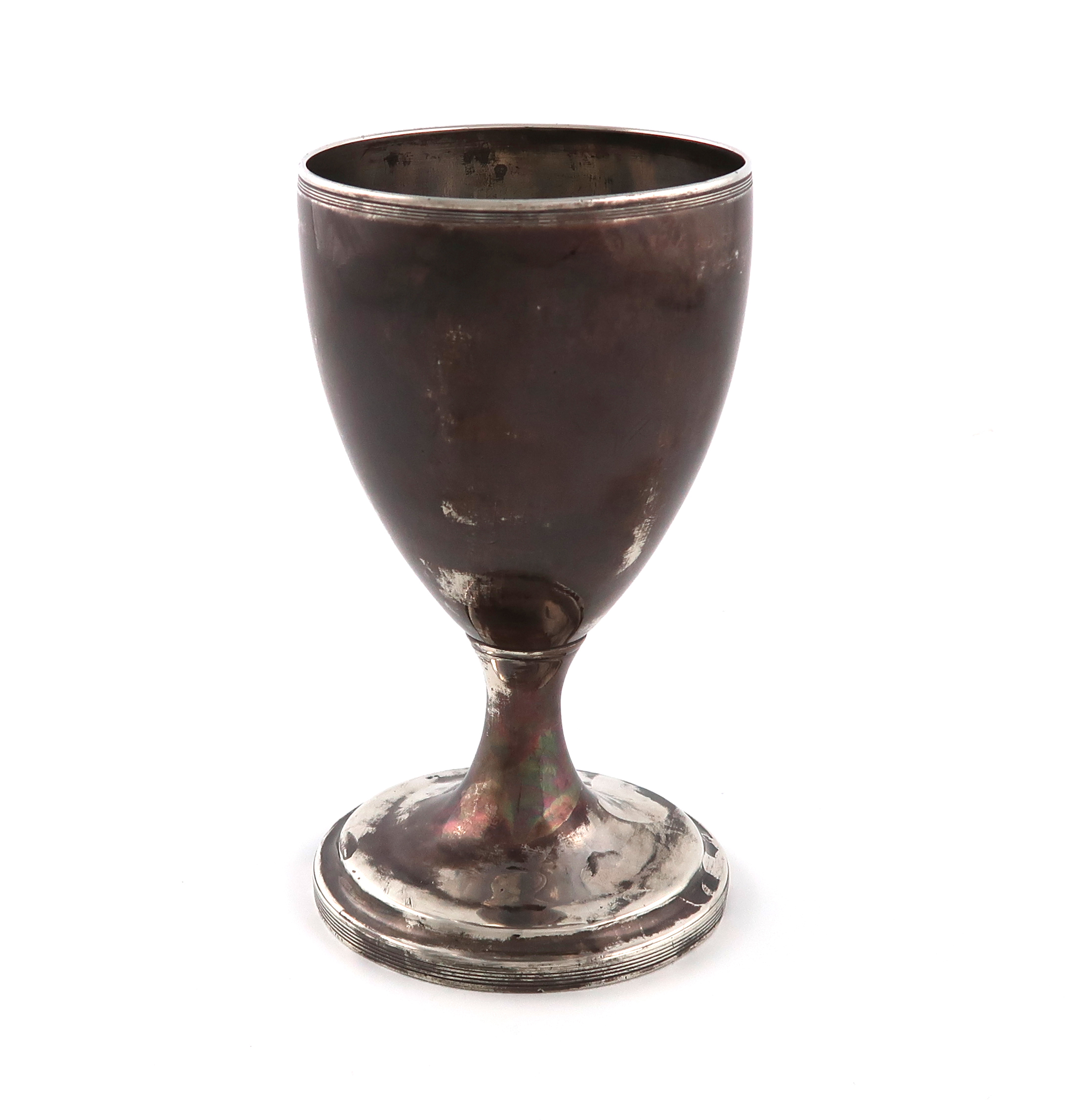 plain form, oxidised silver, on a raised circular foot, height 16cm, approx. weight 7.8oz.