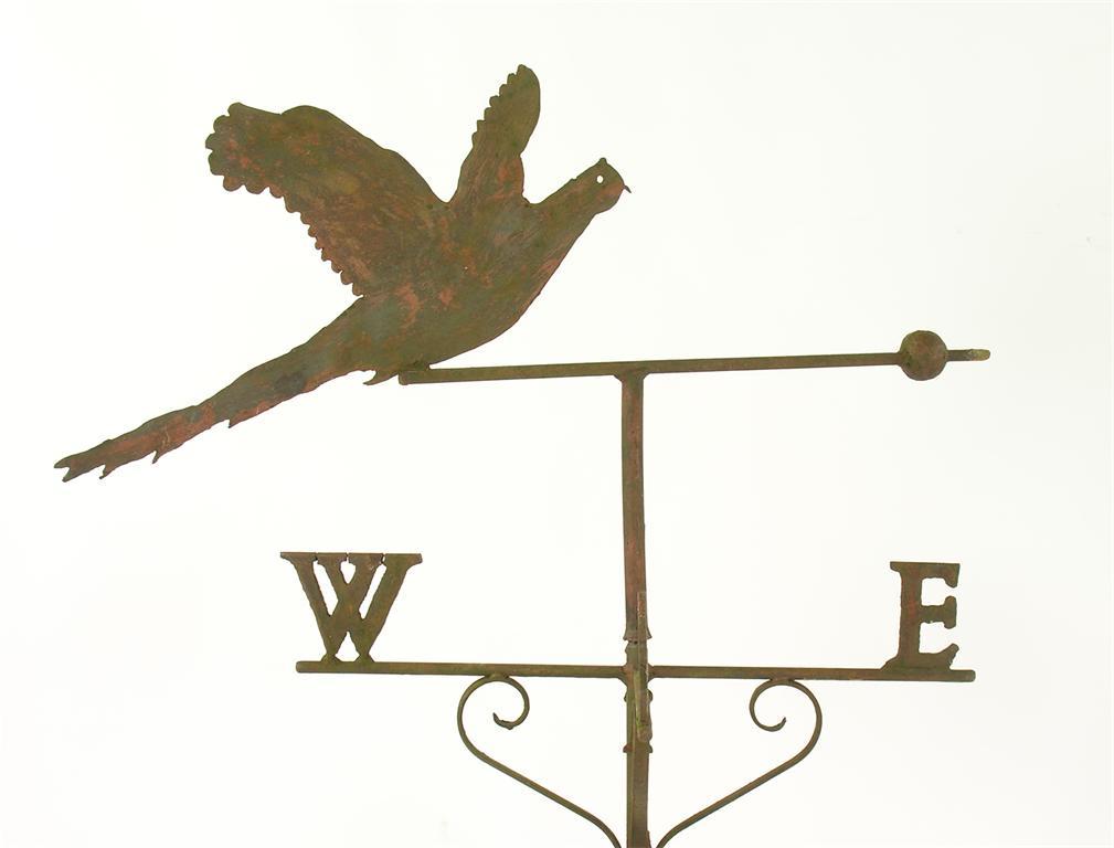 A painted wrought iron weather vane, surmounted a pheasant, 53in (134.5cm) h.