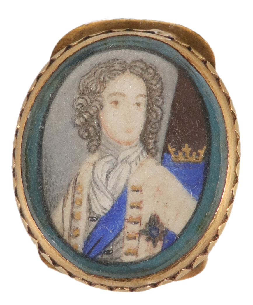 Portrait miniature of a gentleman, traditionally identified as Charles II, wearing the sash of the Order of the Garter, with a crown beside him