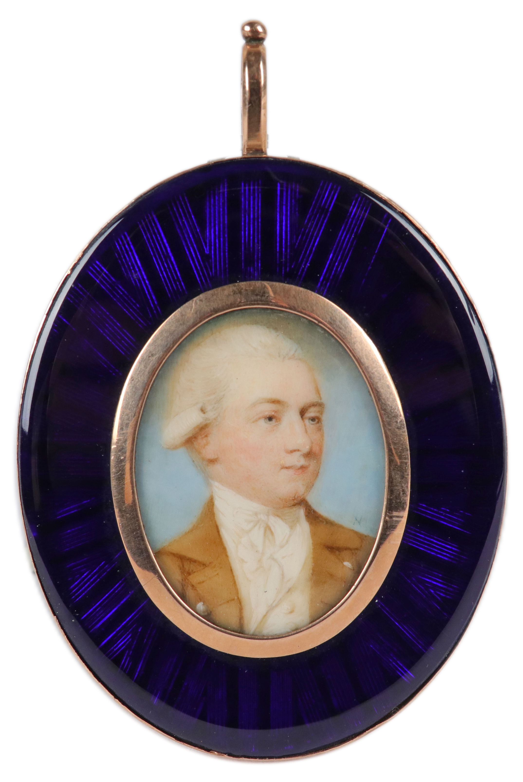 Portrait miniature of a gentleman wearing a brown coat, white waistcoat and powdered wig