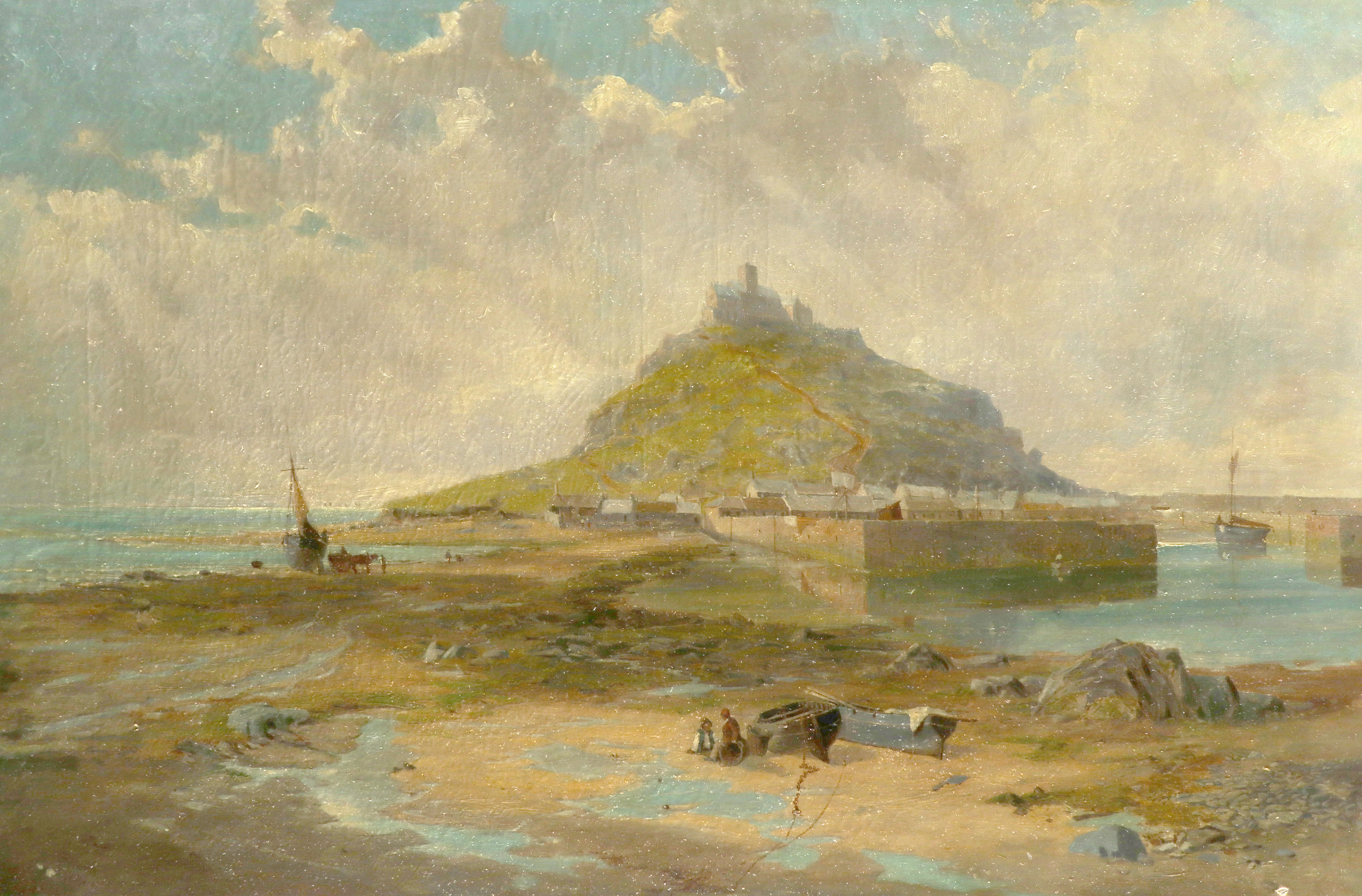 View of Saint Michael's Mount, Cornwall, with figures on the shore