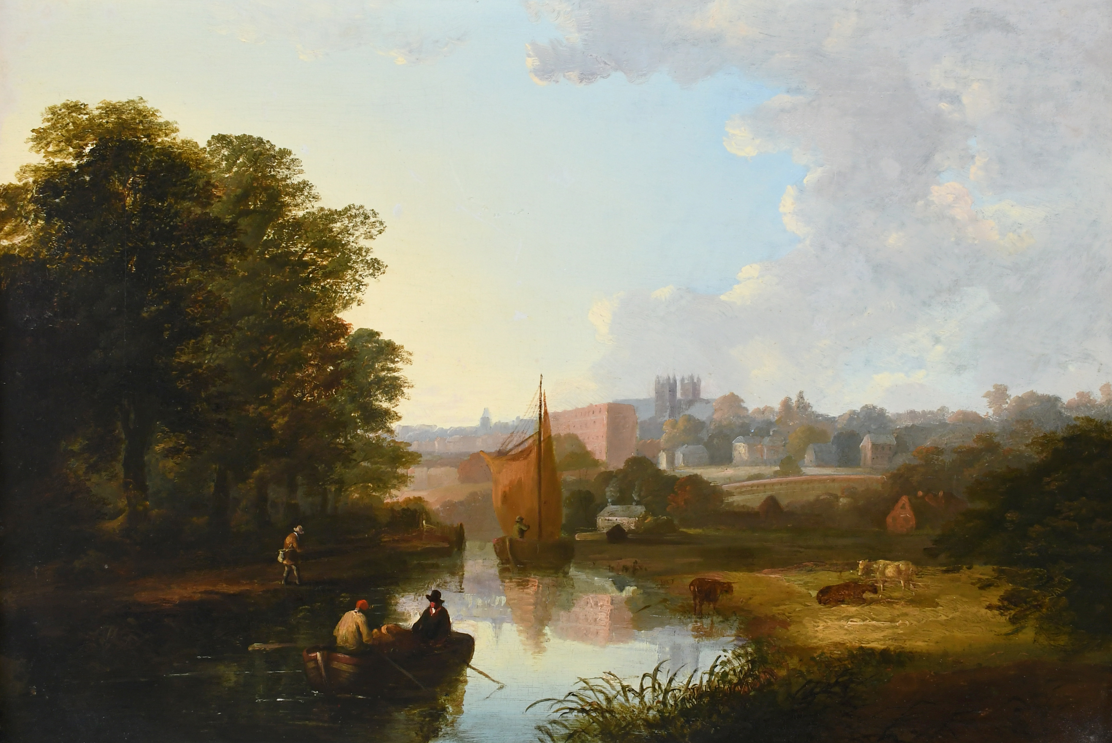 View of the Exeter Canal, with Exeter Cathedral in the distance