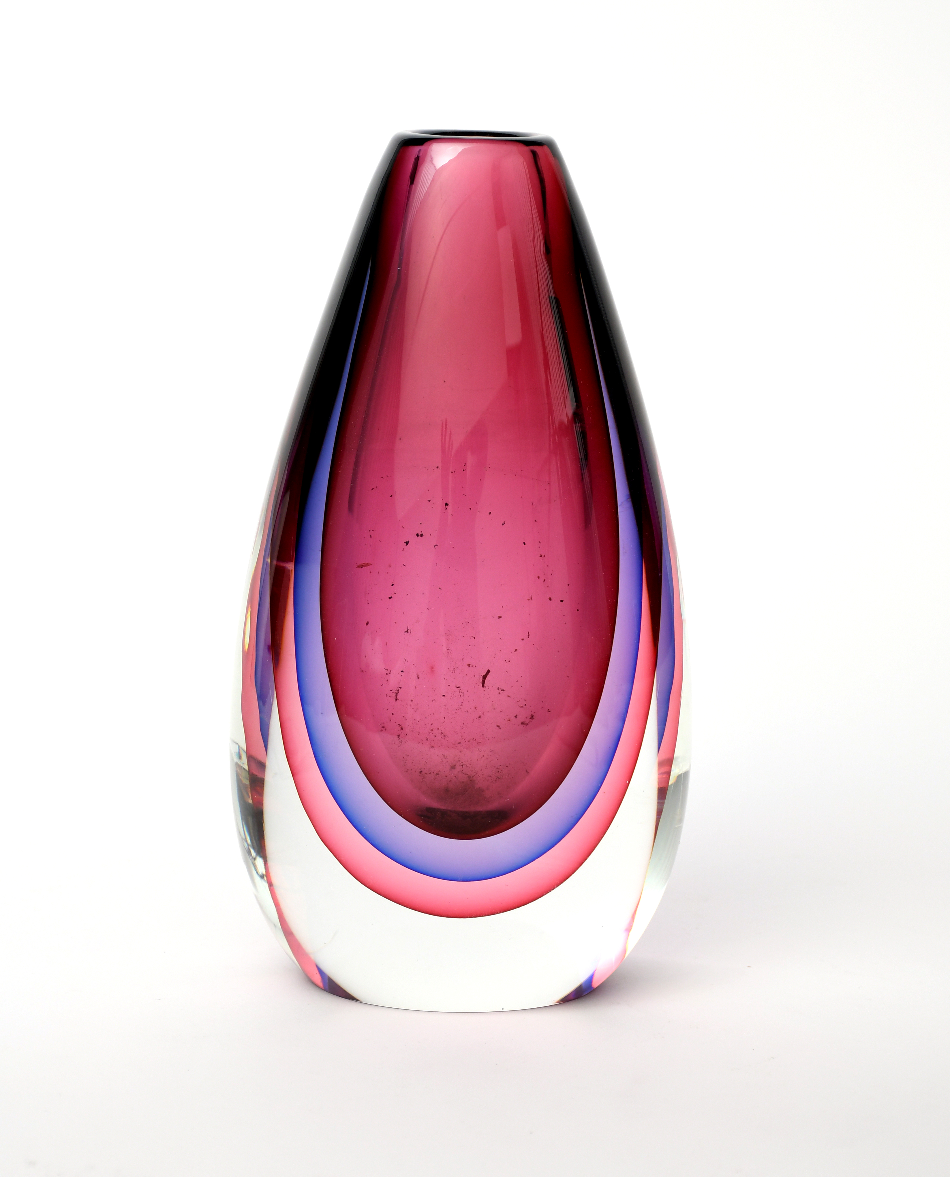 A Murano Sommerso glass vase, teardrop form red, blue and purple glass cased in heavy clear body, unsigned, 30cm. high