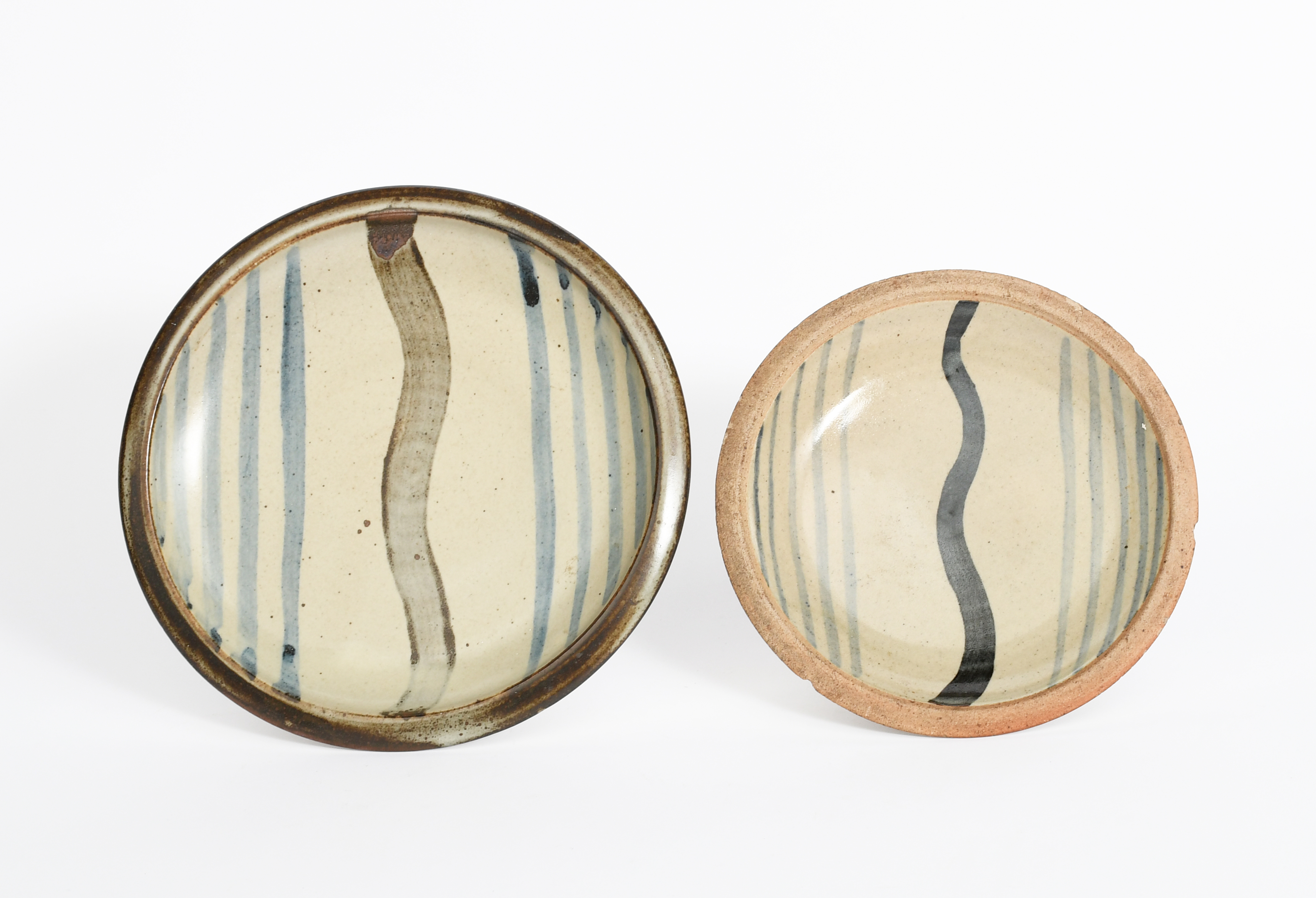 impressed Leach Pottery seal mark to both, chips to rim of smaller plate