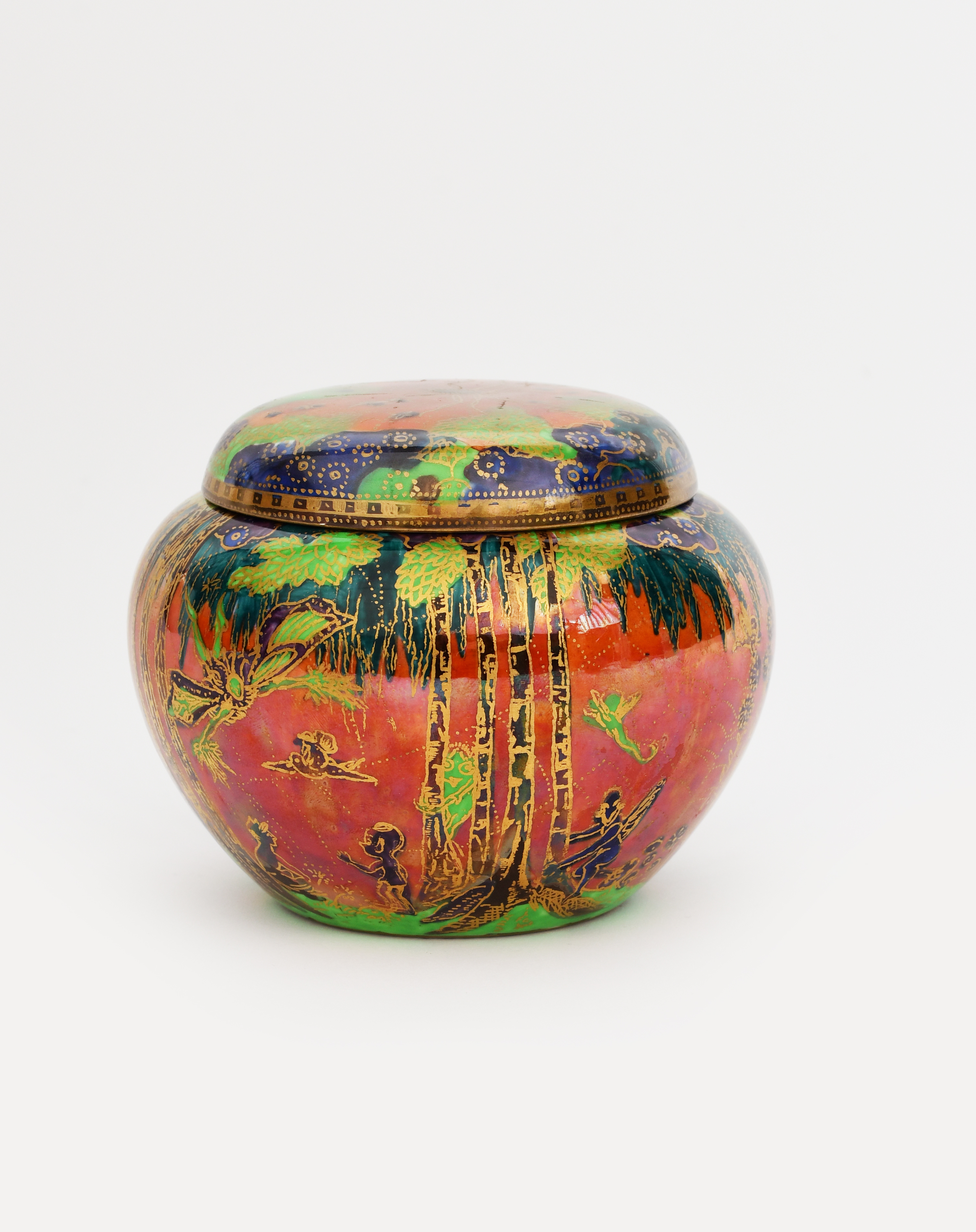 'Woodland Elves IV' a small Wedgwood Fairyland lustre Malfrey pot and cover designed by Daisy