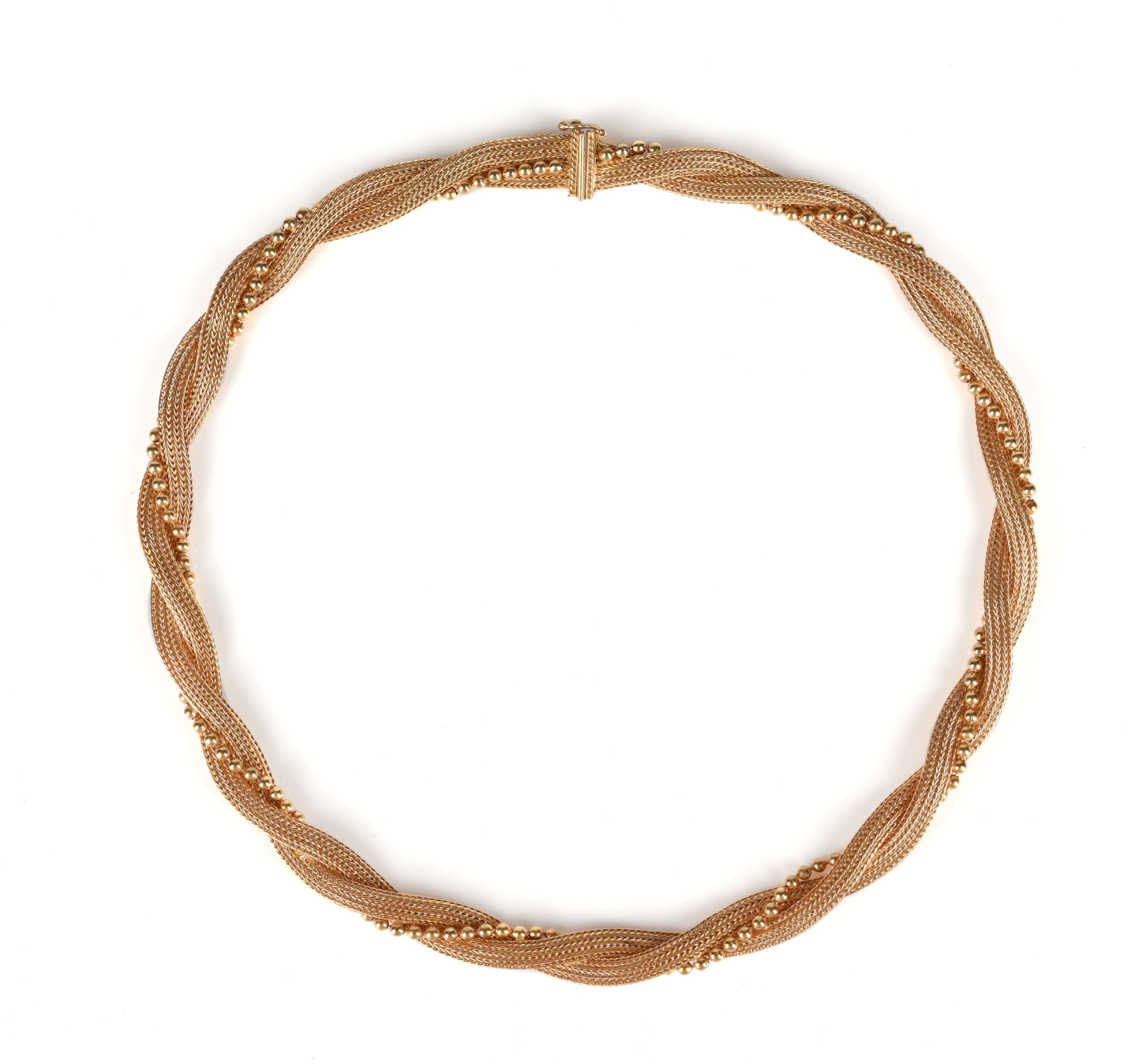 A gold collar necklace, of braided ropetwist design with beaded detail, 18ct London import marks for 1986, 43cm long, 40g