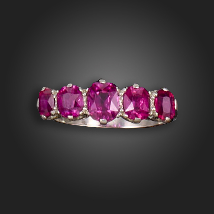 A ruby half-hoop ring, set with graduated cushion-shaped rubies in platinum, size M 1/2