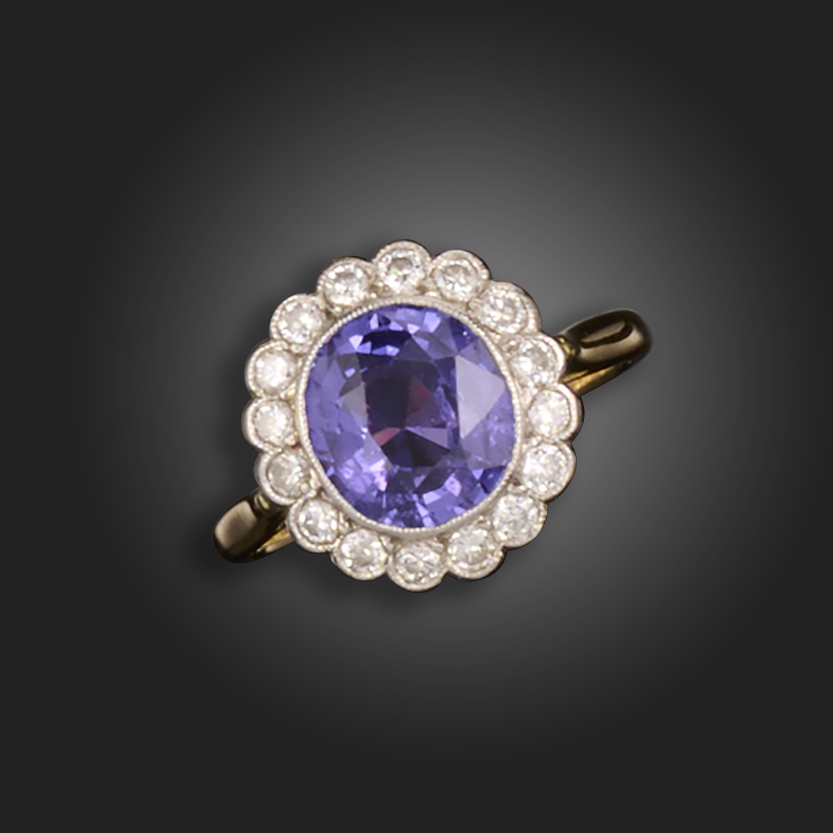 A purple sapphire and diamond cluster ring, GCS: Sri Lanka, no heat