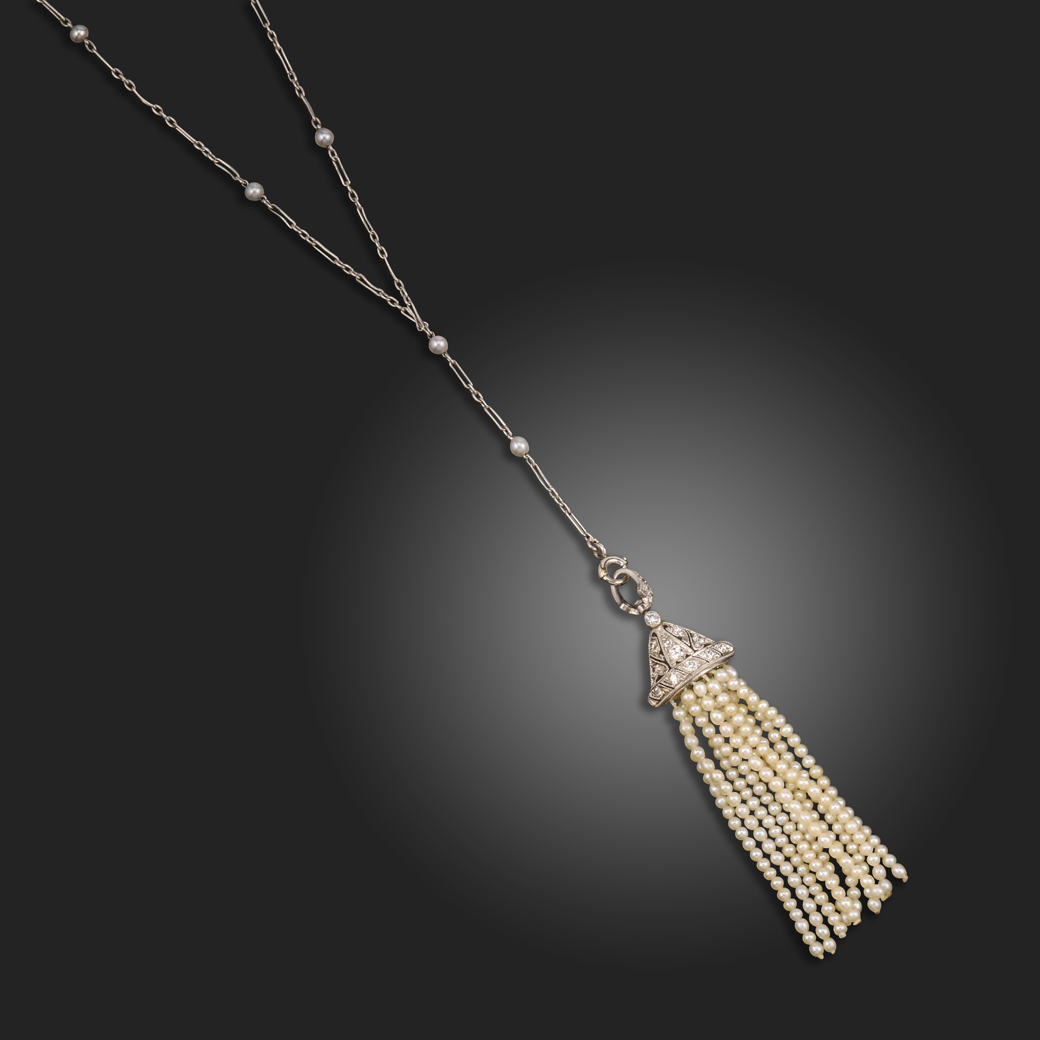 An Art Deco diamond and seed pearl tassel pendant by Cartier