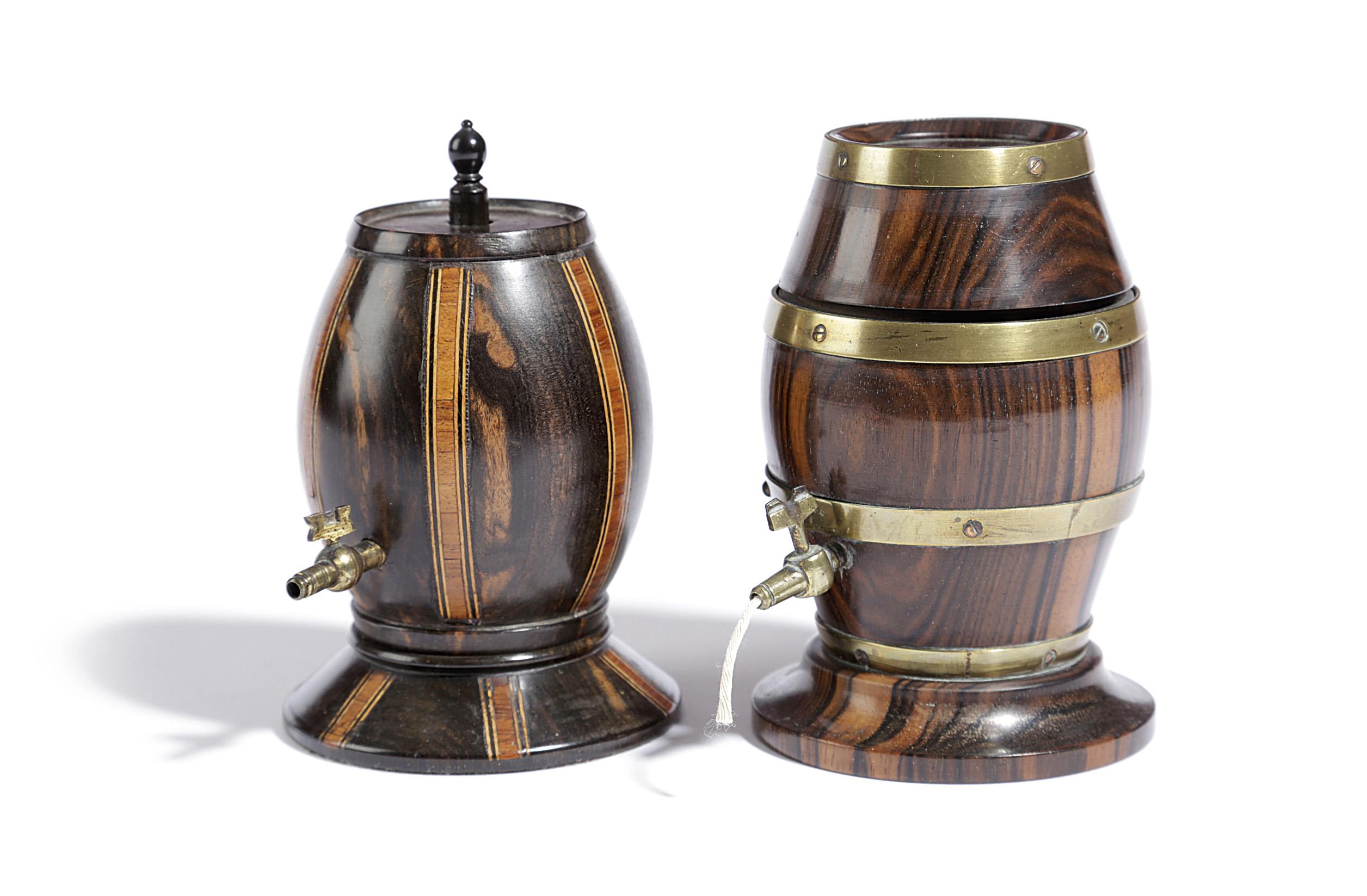one brass bound, the other with kingwood banding, both with a brass tap cutter (2)