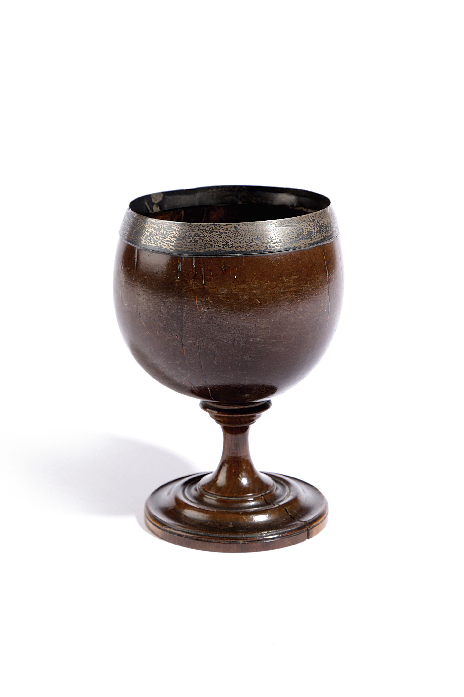 unmarked, the rim engraved with the initials 'FS', on a turned stem and foot