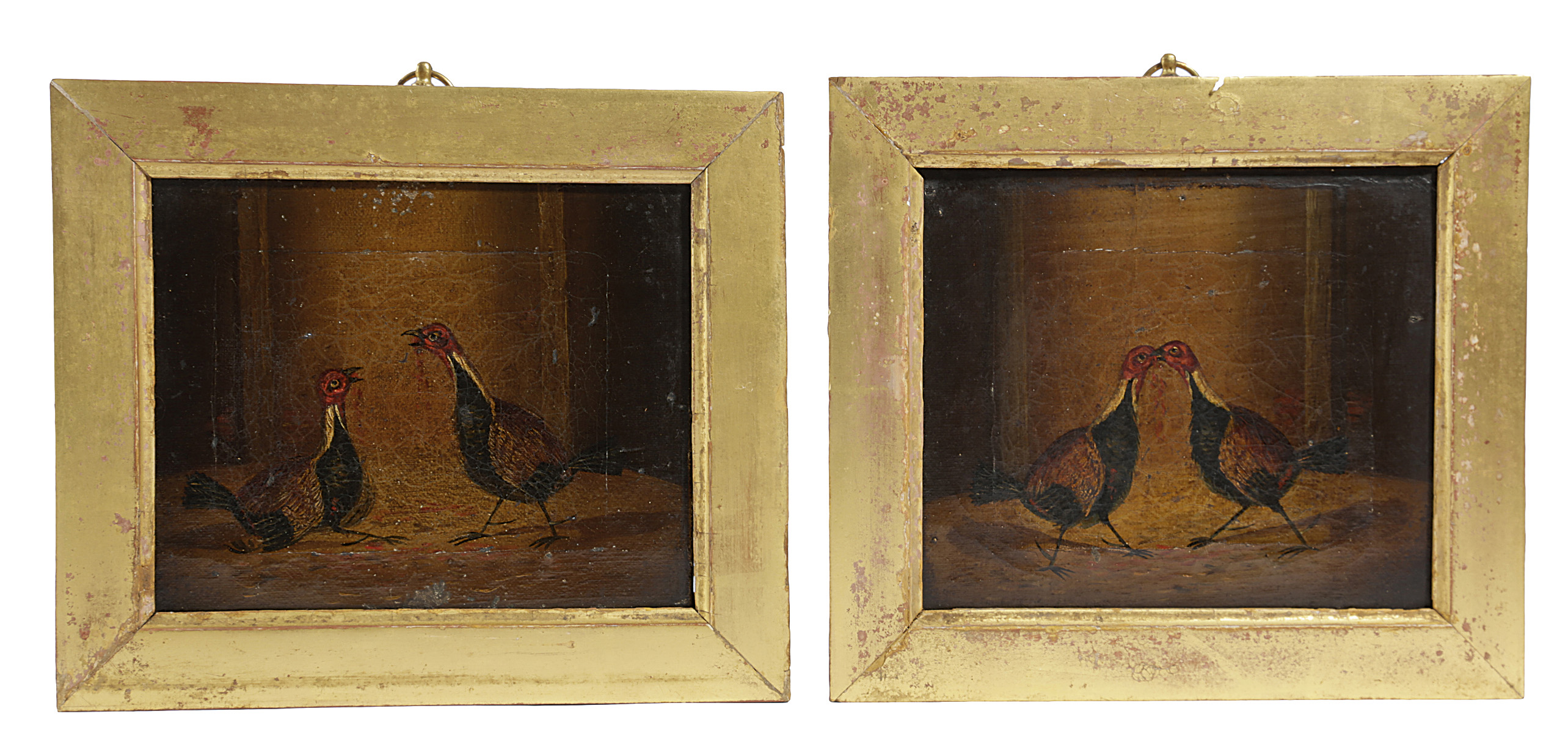 A PAIR OF VICTORIAN COCK FIGHTING PAINTINGS