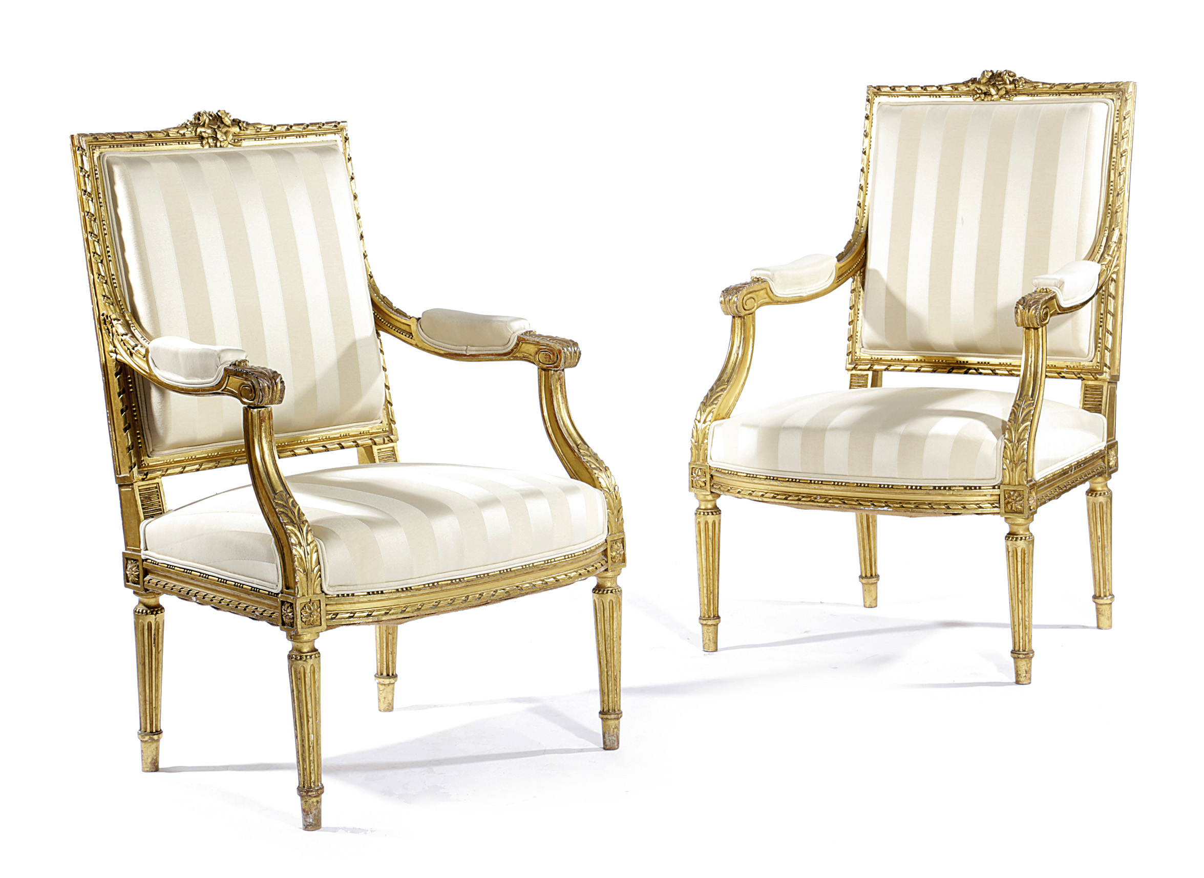 A PAIR OF FRENCH GILTWOOD FAUTEUILS IN LOUIS XVI STYLE