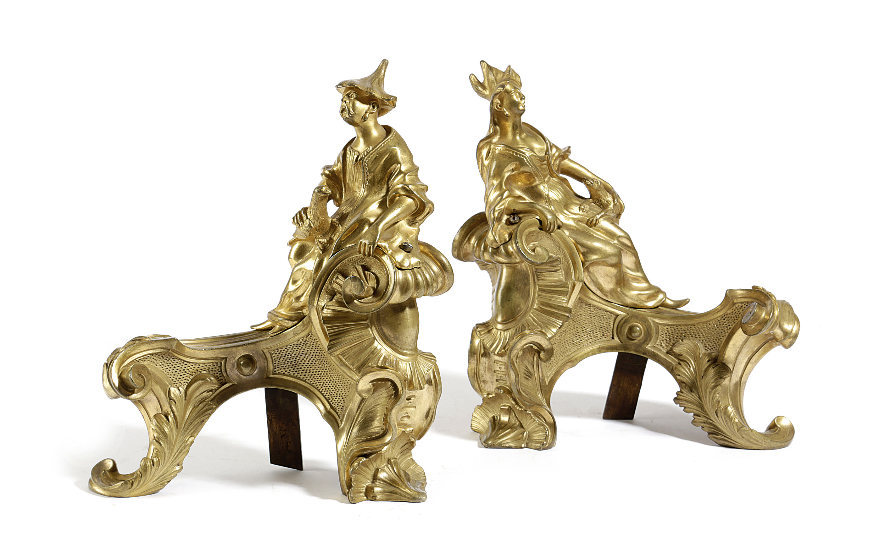 A PAIR OF FRENCH ORMOLU CHENETS