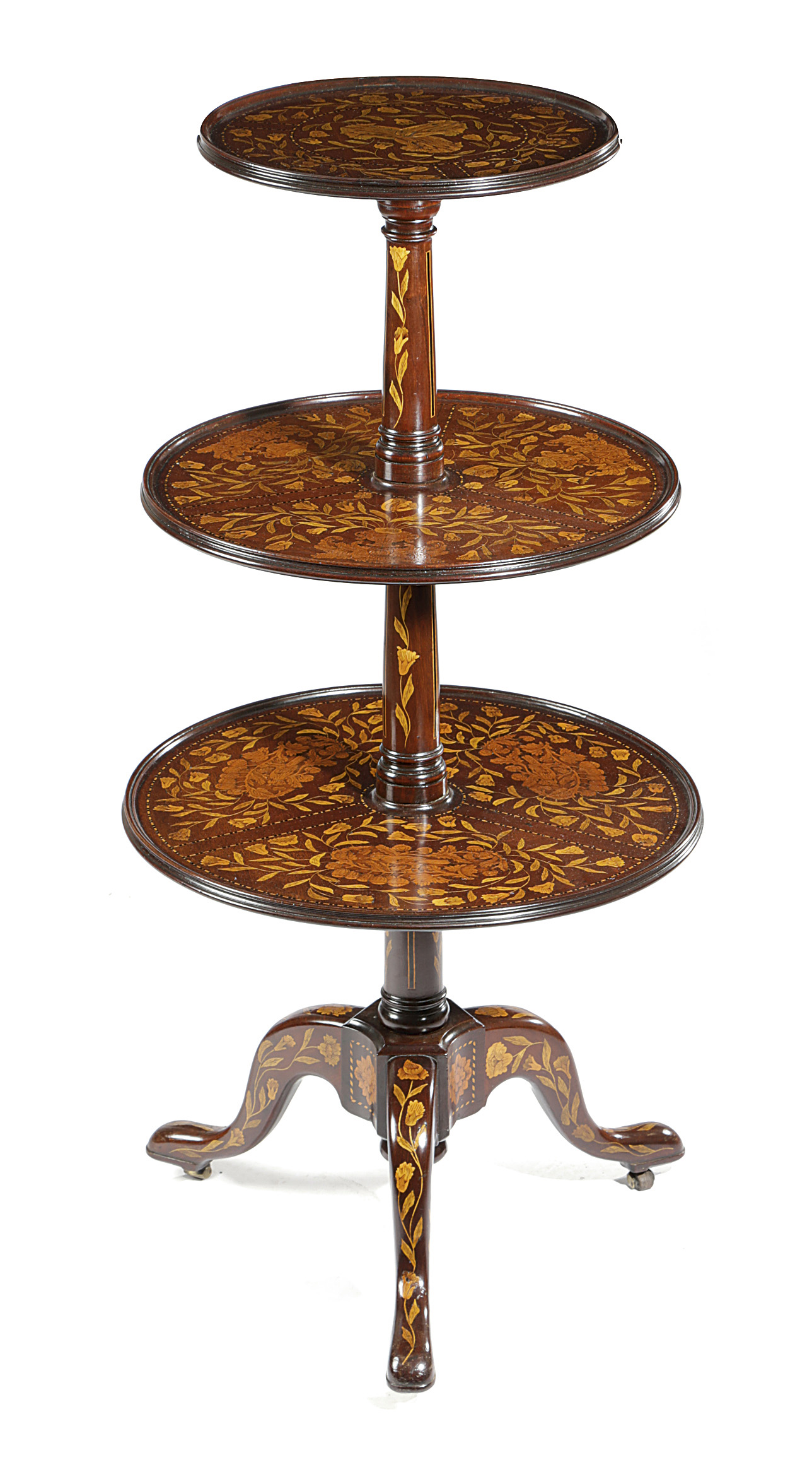 A MAHOGANY AND MARQUETRY DUMB WAITER