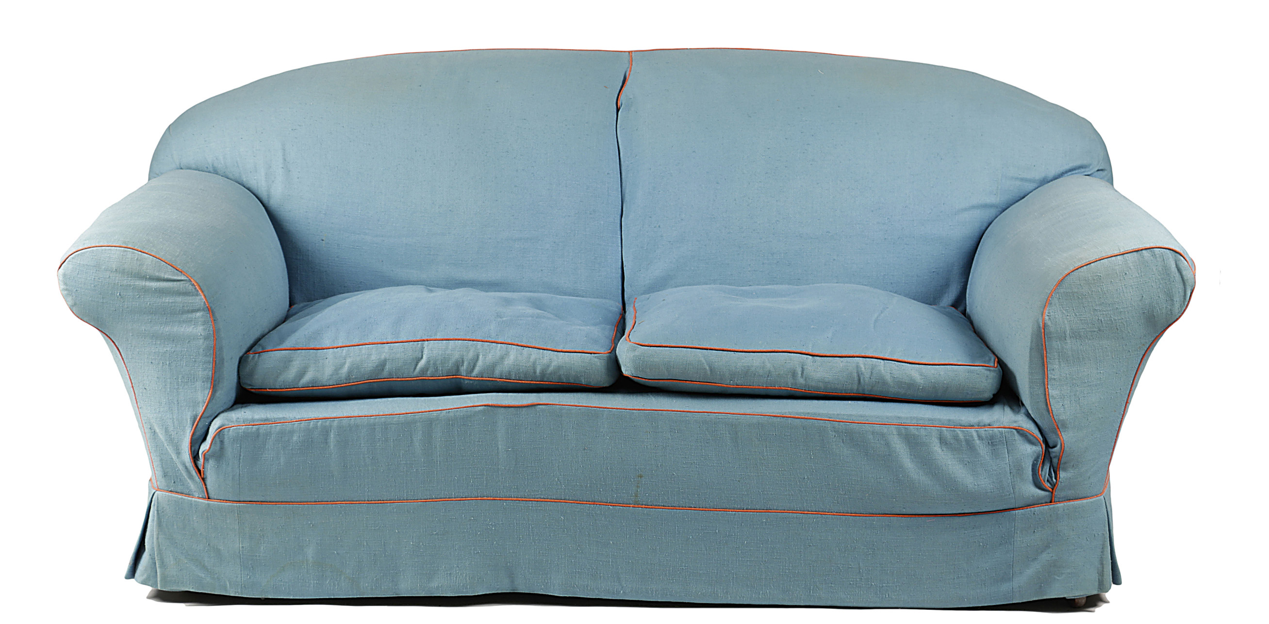 each with loose covers, one on square tapering front legs and on ceramic castors, the other in Howard style by Peter Dudgeon (2)