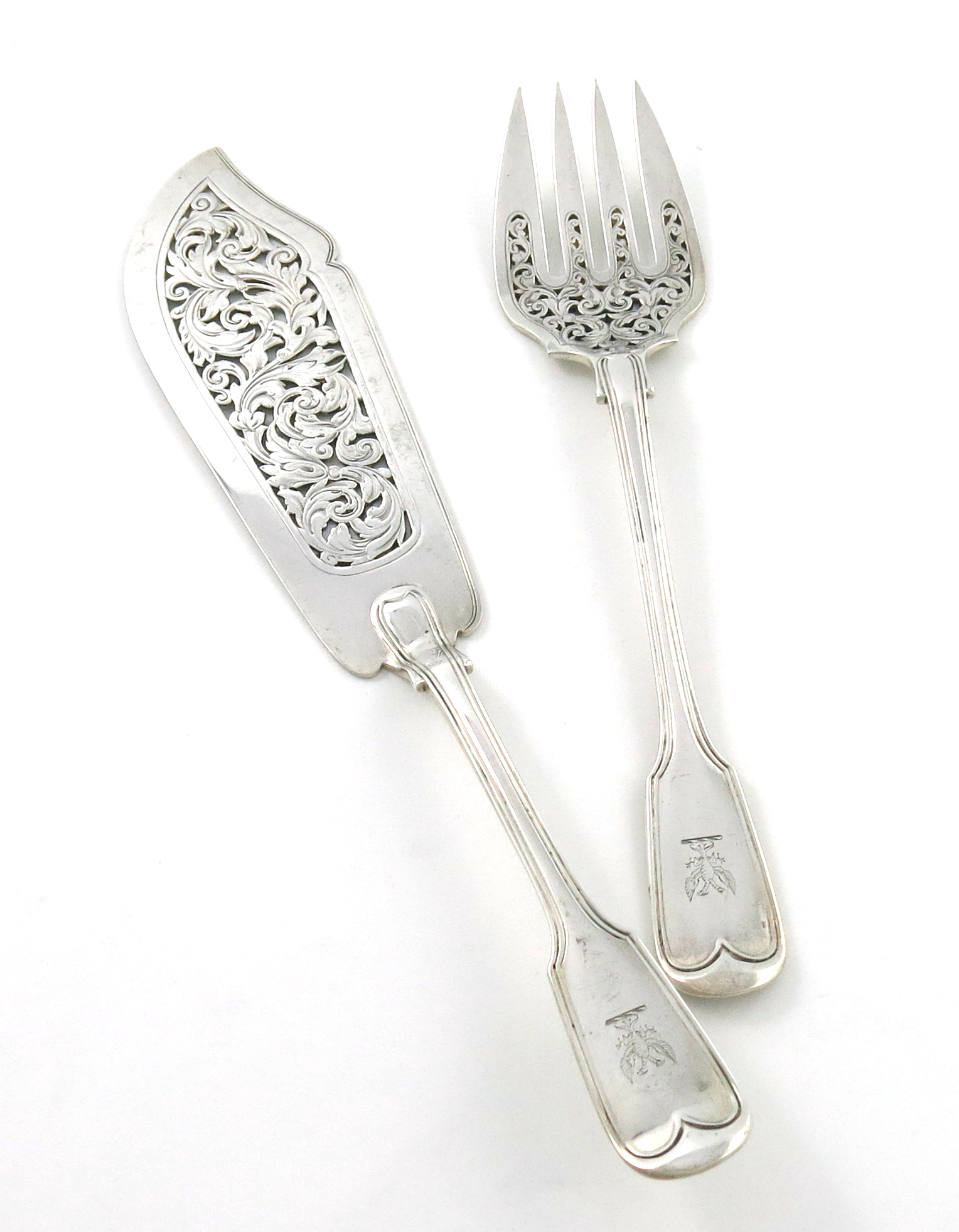 A pair of Victorian silver Fiddle and Thread pattern fish servers,