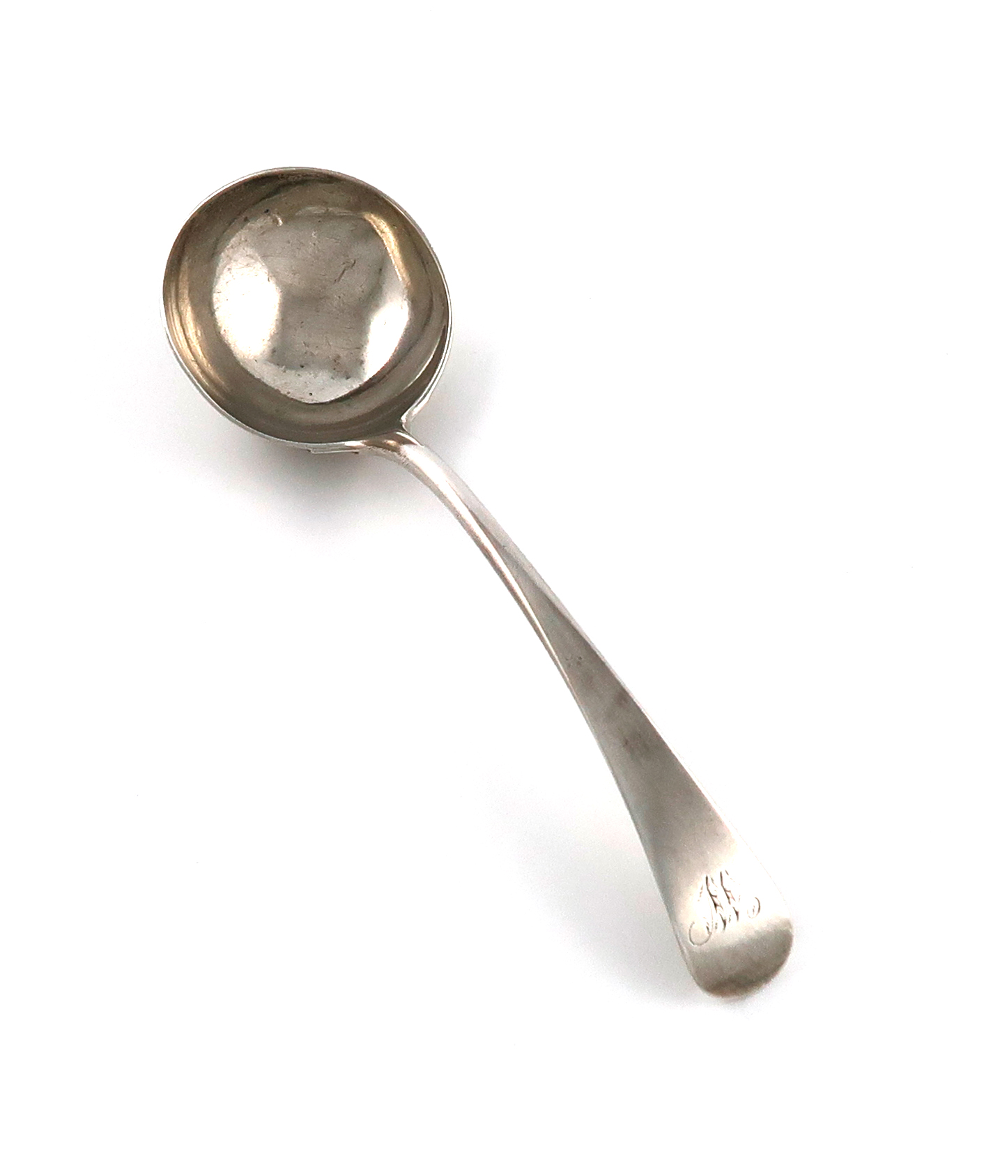 circular bowl, double from heel, the terminal with an initial, length 16cm, approx. weight 1.4oz.