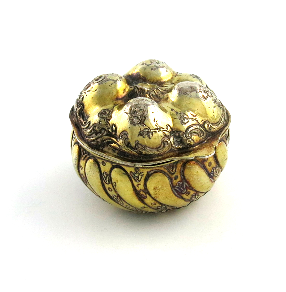 fluted and embossed decoration, hinged cover, diameter 5.5cm, approx. weight 1.8oz.