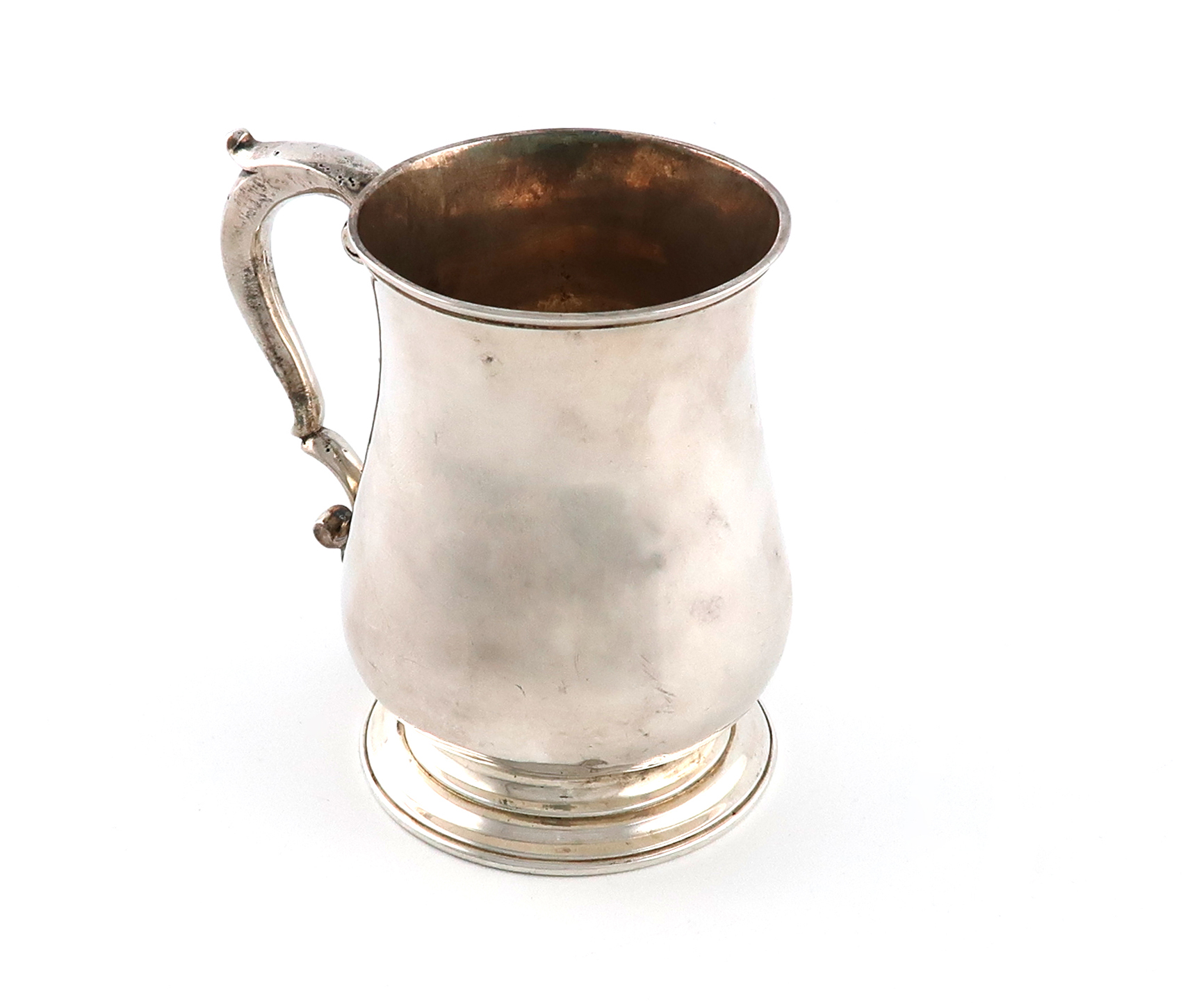 baluster form, scroll handle, on a raised circular foot, height 11.8cm, approx. weight 9oz.