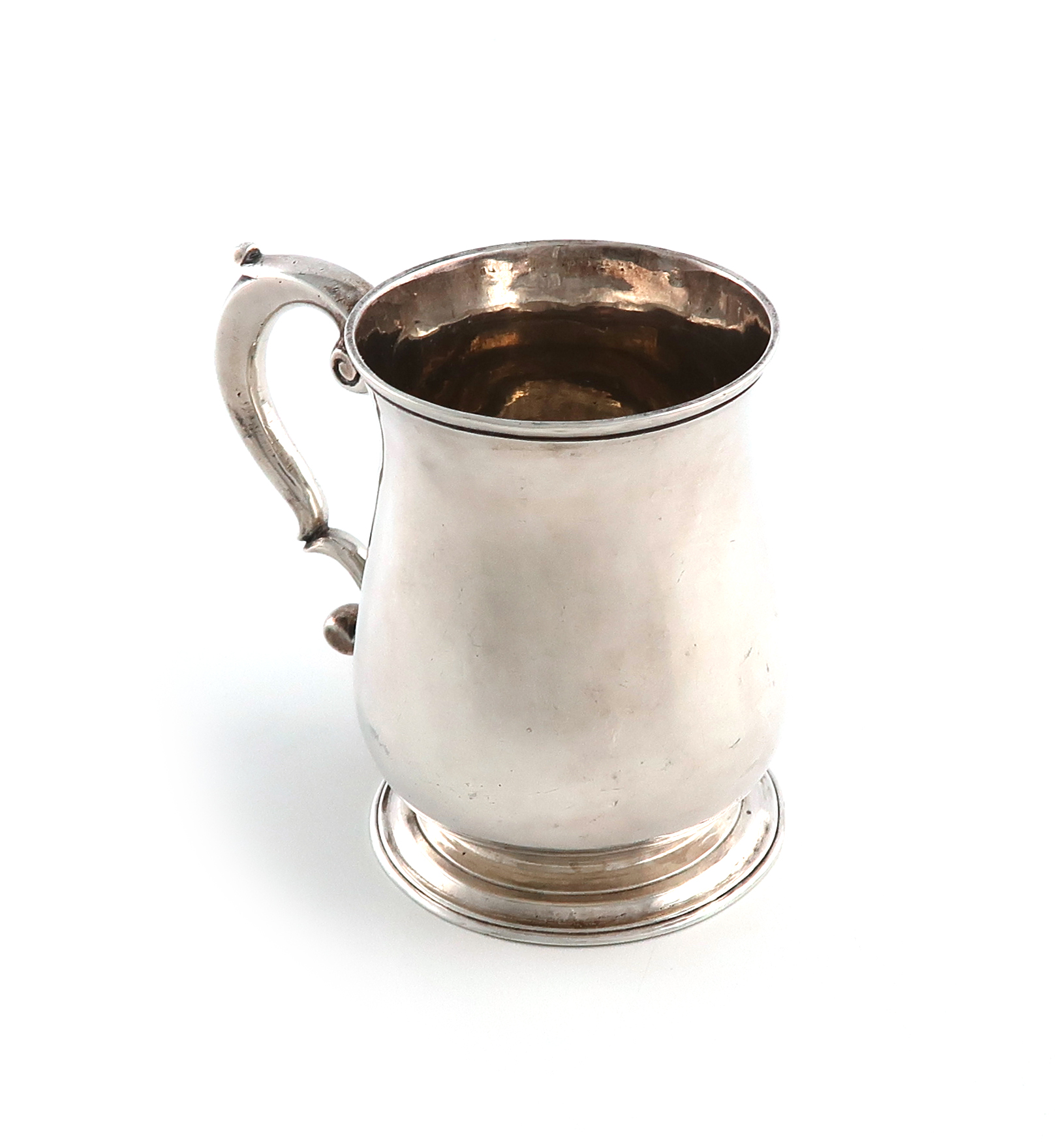 baluster form, scroll handle, on a raised circular foot, height 9.5cm, approx. weight 6.2oz.