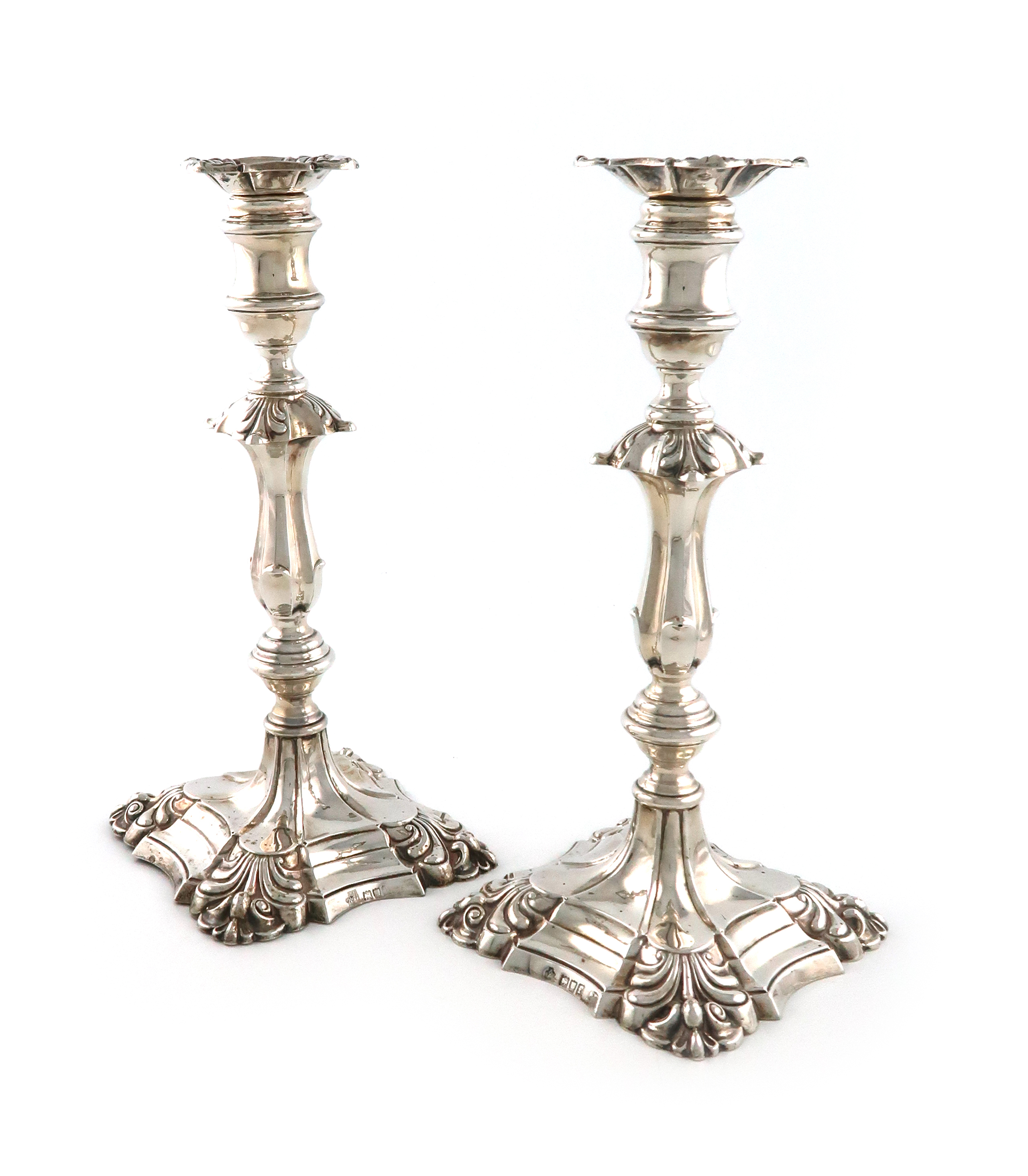 A pair of Edwardian silver candlesticks
