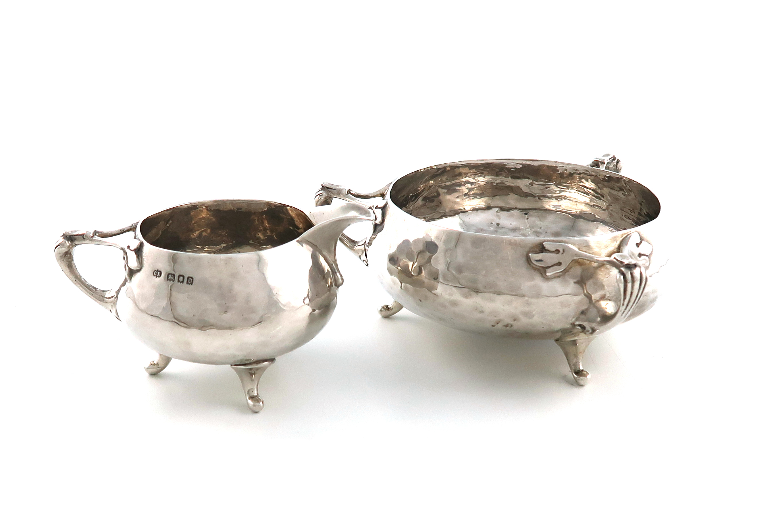 By Charles Edwards, an Art Nouveau silver cream jug and sugar bowl,